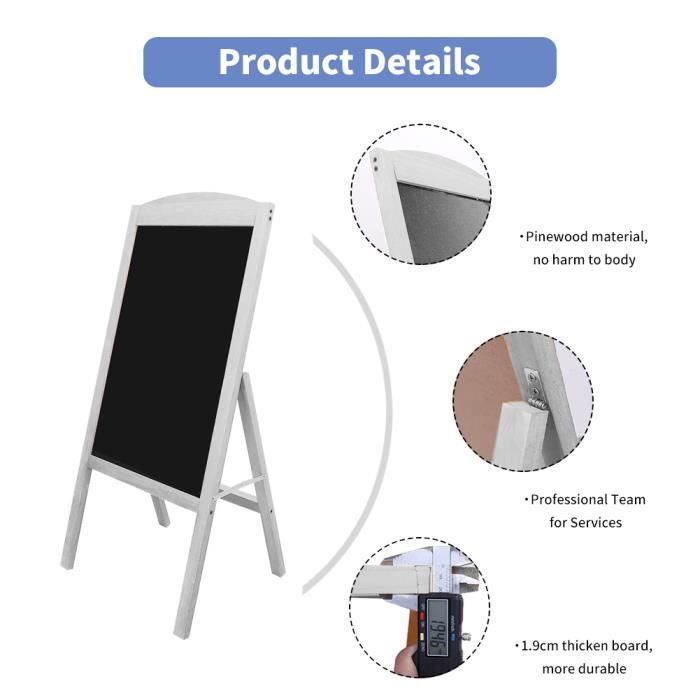Avec cette quantité suffisante, vous pouvez en garder un à la maison et un au bureau, ou installer les deux tableaux dans différents espaces, gardant votre organisation à un maximum Caractéristiques : En tant qu'outil organisationnel crucial, ces petits tableaux d'affichage fonctionnent pour afficher des informations importantes et servir de rappel. Ardoises chevalet extérieur en bois avec 2 faces magnétiques 38x45x78cm... Ils offrent une présentation tangible et visuelle de vos horaires ou tâches, vous permettant de voir, prioriser et gérer votre temps et vos tâches plus efficacement. Dimensions : environ 28 x 22 x 6 cm. Sa taille compacte le rend idéal pour le bureau, le restaurant, la maison ou l'école, offrant une visibilité claire sans occuper beaucoup d'espace mural Caractéristiques : Matériau : acier inoxydable., Couleur : noir. Chevalet en bois noir avec porte affiche alu format A2 dimensions Matériau de qualité : nos tableaux magnétiques sont fabriqués en acier inoxydable robuste, connu pour sa durabilité et sa fiabilité ; la finition métallique offre un look attrayant qui peut se fondre facilement dans les paramètres ; sa surface est facile à écrire et à effacer, ne laisse pas de marques une fois nettoyée, offrant un outil de présentation et d'organisation de qualité Taille adaptée : les petits tableaux magnétiques mesurent environ 28 x 22 x 6 cm, offrant suffisamment d'espace pour afficher les informations essentielles ou les rappels. La couleur peut varier légèrement en raison des différents affichages de l'écran. Tableau Magnétique Extérieur POPRUN Lot De 4 Tableaux Blancs Magnétiques Effaçables En Espagnol Tableau D'affichage Magnétique Il vient avec 20 aimants et des autocollants pour le fixer au mur. Même s'il n'est pas aimanté lui-même, il accroche tous tes magnets : photos, notes, listes... Facile à utiliser et robuste : notre tableau d'affichage est conçu pour plus de commodité, il est facile à monter et à repositionner sans déformation. Remarques : Les mesures étant prises à la main, les tailles indiquées peuvent varier légèrement.
