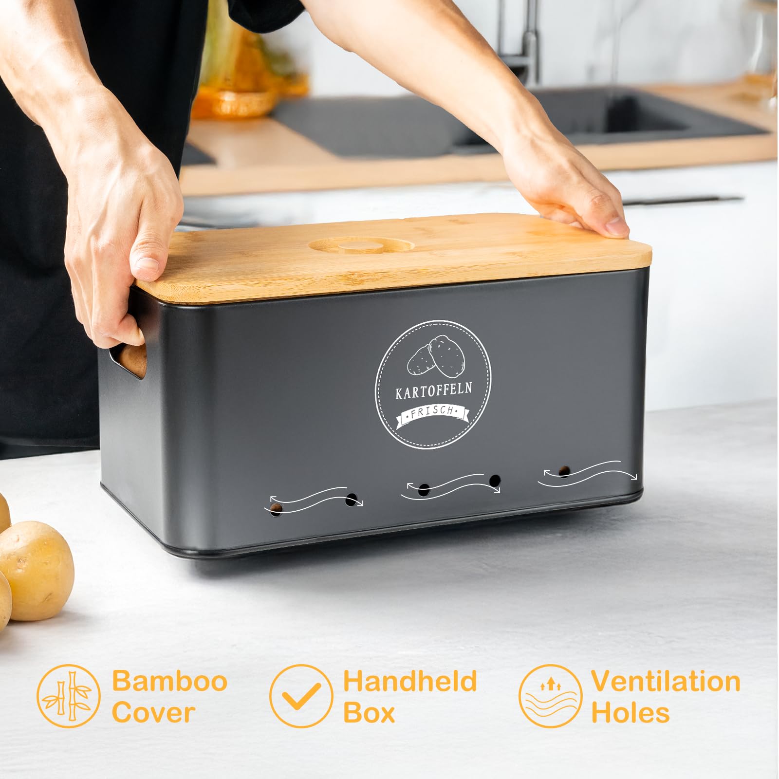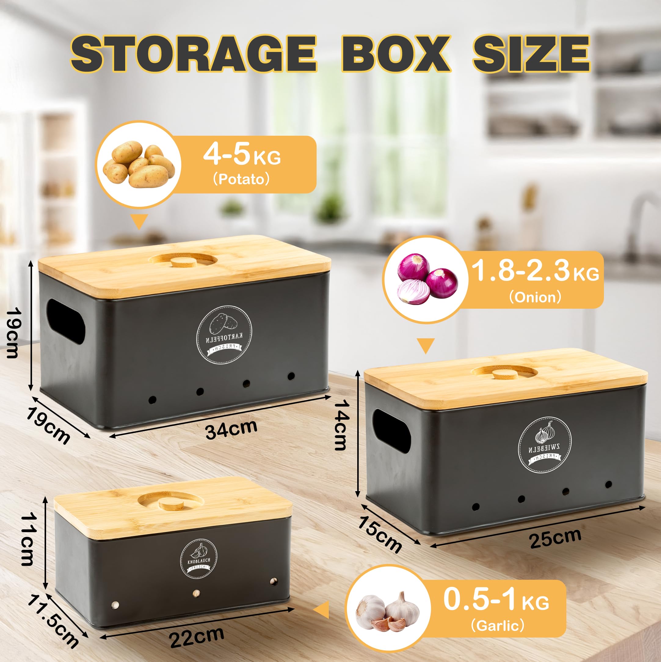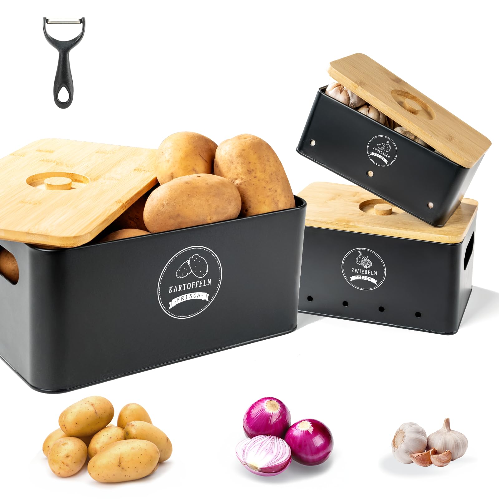 Description du produit 3 Pièces Boîte de Pommes de Terre Boîte de rangement pour frigo - Boîte de conservation pour oignons Boîte de conservation pour pommes de terre, oignons et ail Relaxdays, 3 pièces, avec couvercle et aérations, métal, gris ; Livraison gratuite. i ; i. Livré entre... Rangement Pomme De Terre Boite Rangement Cuisine 3 Boîtes Métal Rangement Pommes De Terre, Oignons, Ail - Conservation Légumes - Style Vintage Boite Conservation Verre Boite Pomme De Terre Amazon Grande capacité : Le conteneur pour pommes de terre peut contenir environ 4 kg, le conteneur pour oignons environ 2-3 kg, et le plus petit conteneur environ 1 kg d'ail Ce set de 3 boîtes (pommes de terre, oignons, ail) est en métal galvanisé avec un couvercle en bambou stylé. Chaque boîte a des trous d'aération pour que l'air... Matériaux robustes et écologiques; se nettoie rapidement et facilement avec un chiffon humide, garantissant hygiène et confort 【Accessoires inclus et grande capacité】: Comprend un éplucheur de pommes de terre noir mat de haute qualité, qui facilite et rend votre travail en cuisine plus efficace. 【Design soigné】: Des ouvertures sur les deux côtés pour un transport facile ; le couvercle en bambou dispose d’une poignée encastrée, qui peut être ouvert de deux manières, facilitant son utilisation Accédez au classement des meilleurs boite pommes de terre de décembre 2025, qui repose sur le nombre de ventes, d