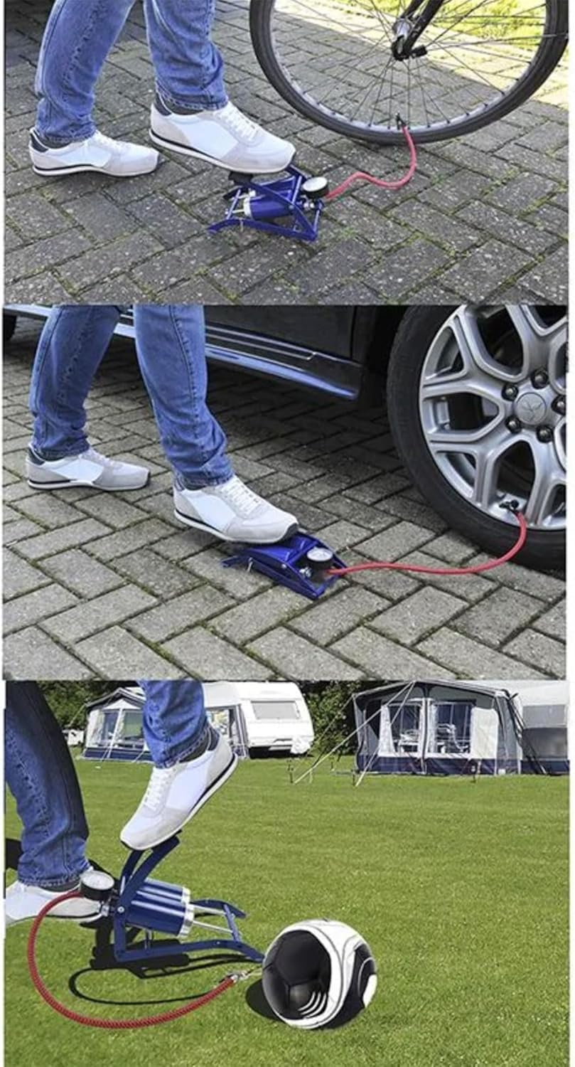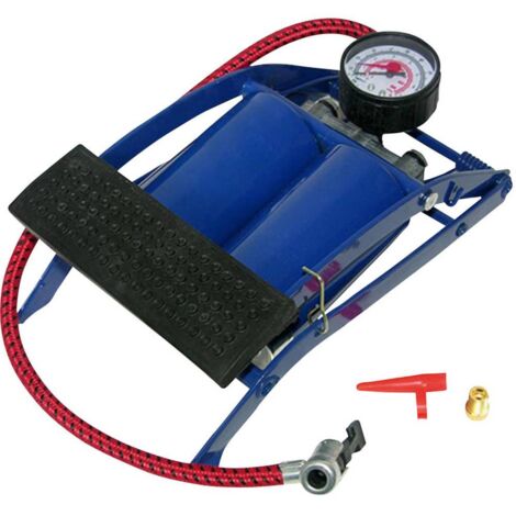 Pompe Double Piston Pompe à Vélo AMZOON Avec Manomètre - Double Piston Pour Presta/Schrader/Dunlop Gonfleur Electrique Pompe à pied double avec manomètre, contenant un jeu d'adaptateurs, pédale recouverte de caoutchouc pour une prise ferme., Corps en métal. FISCHER Pompe à air à pédale avec double cylindre avec un manomètre... Pompe à Pied Pompe à Pédale à Double Barillet, Pompe à Vélo à Double Cylindre, Pompe Pompe A Voiture Large pédale ergonomique recouverte d'une semelle en antidérapante. Gonflage rapide. Manomètre à lecture en PSI et en Bar. Livrée avec embouts de gonflage pour pneus auto et vélo, ballons, matelas, bateaux pneumatiques, etc. Tuyau flexible en caoutchouc de 60 cm Tuyau en tissu tressé de 500 mm
