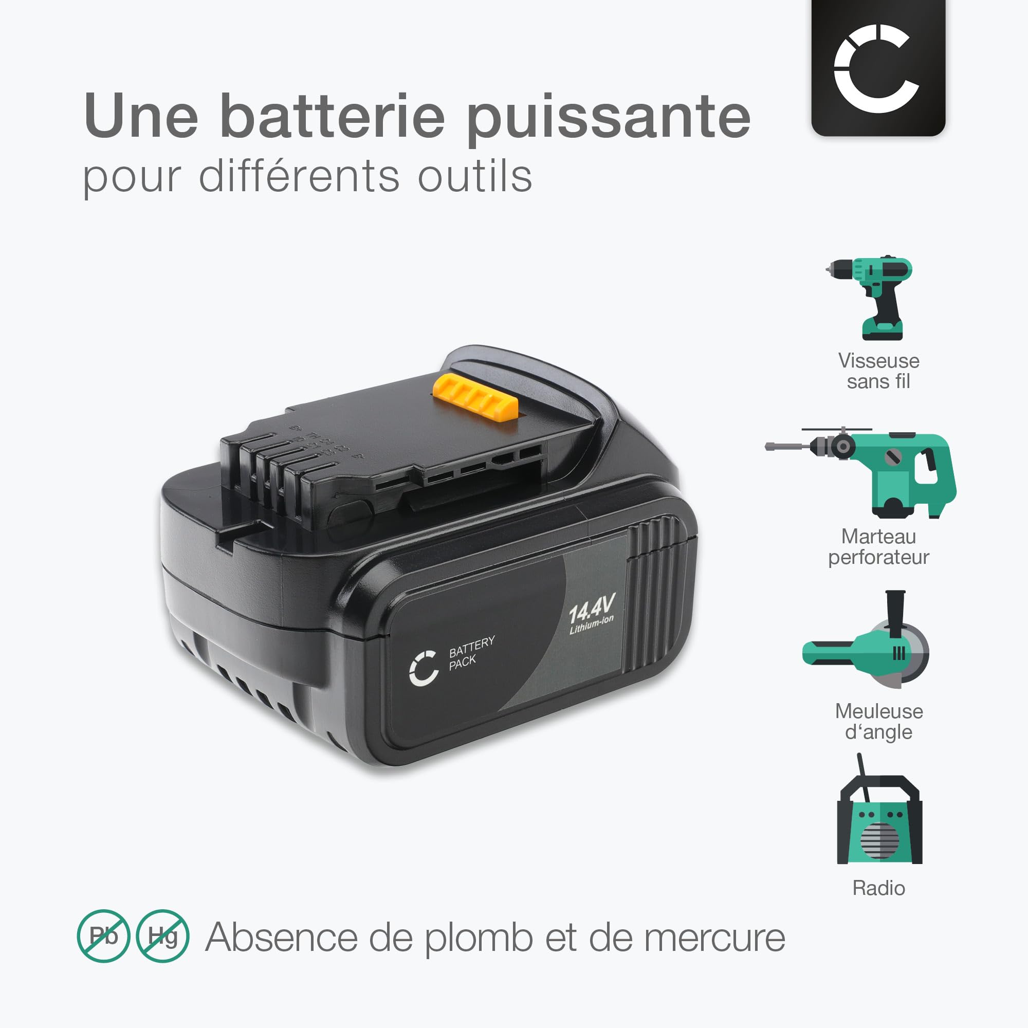 Batterie Li-ion pour Dewalt type DCB141, 14,4 V, 4000 mAh/58 Wh, noir Il s'agit d'une batterie de qualité supérieure, idéale comme batterie de rechange pour votre ancienne batterie ou batterie défectueuse, mais aussi comme batterie de rechange supplémentaire pour vos déplacements. HAUTE CAPACITÉ ET GRANDE LONGÉVITÉ - Avec la haute capacité de 3Ah, cette batterie performante fournit la puissance dont vous avez besoin en toute situation... Batteries lithium-ion 14,4 V batterie d'outil électrique de rechange pour Dewalt Perceuse sans fil Dcb140 Dcb141 Dcb142 Dcb143 Dcb145,Trouvez les Détails sur Batterie Li-ion 14, 4 V DeWalt de Batteries lithium-ion 14,4 V batterie d'outil électrique de rechange pour Dewalt Perceuse sans fil Dcb140 Dcb141 Dcb142 Dcb143 Dcb145 - Qixin Advanced Power Source Materials Co., Ltd. ★ Robuste : les batteries sont conçues pour résister aux exigences de l'utilisation d'outils. Avant l'achat, il est recommandé de comparer avec précision le numéro de modèle et les dimensions pour assurer un remplacement fluide. Attention : les batteries fournies avec un chargeur ne doivent être chargées qu'avec celui-ci. Ainsi, la batterie peut atteindre un plus grand nombre de cycles de charge-décharge. Les matériaux durables assurent des performances fiables même dans des conditions difficiles. Une protection électronique et la fabrication de composants de qualité supérieure vous offrent un haut niveau de sécurité, à la fois contre la surcharge et contre les courts-circuits. ★ Sécurité et fiabilité : les mécanismes de sécurité intégrés protègent contre la surcharge, la surchauffe et d'autres risques potentiels. Dewalt Batterie EXTENSILO Batterie Remplacement Pour Dewalt DCB142-XJ, DCB142, DCB141 Batterie Dewalt 18v 2ah ConditionRemplacement, Tout Neuf ; Tension14.4V ; Capacité43.2Wh ; Numéro de batterie8 cellules ; Type de celluleLi-ion... 14.4V 4.0Ah Nouvelle batterie pour DEWALT DCD734,DCD737,DCD737D2,DCD735C2,DCD735L,DCD735N