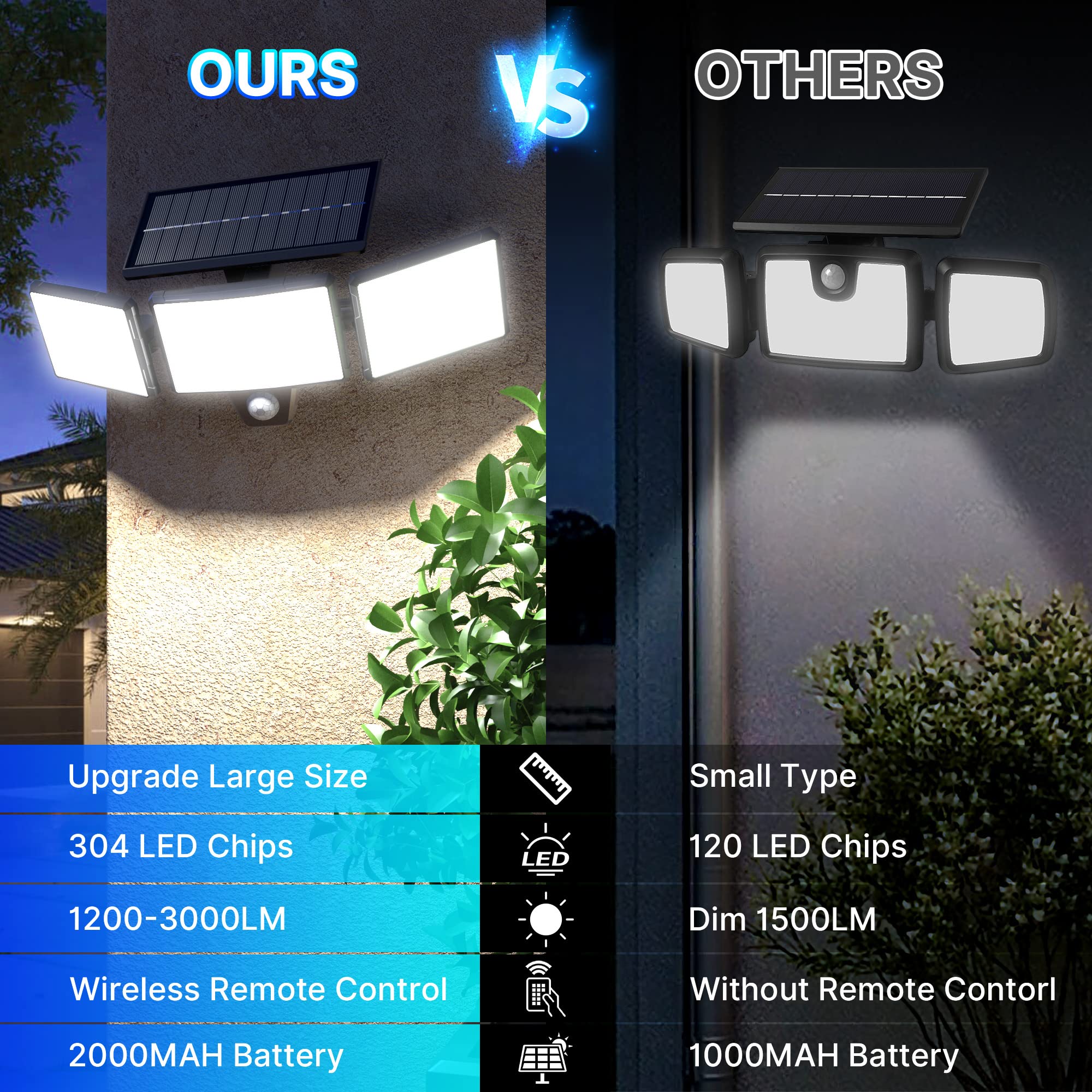 Avec la puissance colossale que le panneau absorbe du soleil, la LED 180 SMD peut fournir suffisamment sa super luminosité de 6500 K pendant environ 12 heures. Trois modes d'éclairage : en appuyant brièvement sur le bouton ON/OFF, vous pouvez changer le mode des projecteurs à énergie solaire. Jusqu'à 270 ° de large angle d'éclairage et 400 m², les lampes solaires LED peuvent répondre à vos différents besoins pour le jardin, la terrasse, les escaliers, la porte d'entrée, la cour, etc. Adaptée à une utilisation en extérieur, elle résiste à la pluie, à la neige, au gel, etc. Installation facile : Ce kit d'éclairage extérieur contient les accessoires nécessaires pour une installation et une mise en service rapides Resistant et application toutes saisons] Notre lumière solaire extérieure est fabriquée en matériau ABS PC à haute résistance, étanche IP65, avec résistance... Projecteur Solaire Exterieur Lot De 2 Lampes Solaires D'extérieur 100 LED, étanches IP65 | Leroy Merlin Spot Solaire Exterieur Design réglable à 3 têtes pour éclairer une zone plus large : avec le design innovant à trois têtes et grand angle, les têtes peuvent être ajustées vers le haut, vers le bas et horizontalement. Lampes solaires extérieures étanches de 4 500 LM, France Installation facile : les lampes solaires LED d'extérieur peuvent facilement être montées au mur avec les vis dans la boîte. Le design étanche IP65 permet aux lumières de sécurité extérieures de fonctionner parfaitement même par temps de tempête. Aucun fil ou adaptateur n'est nécessaire.