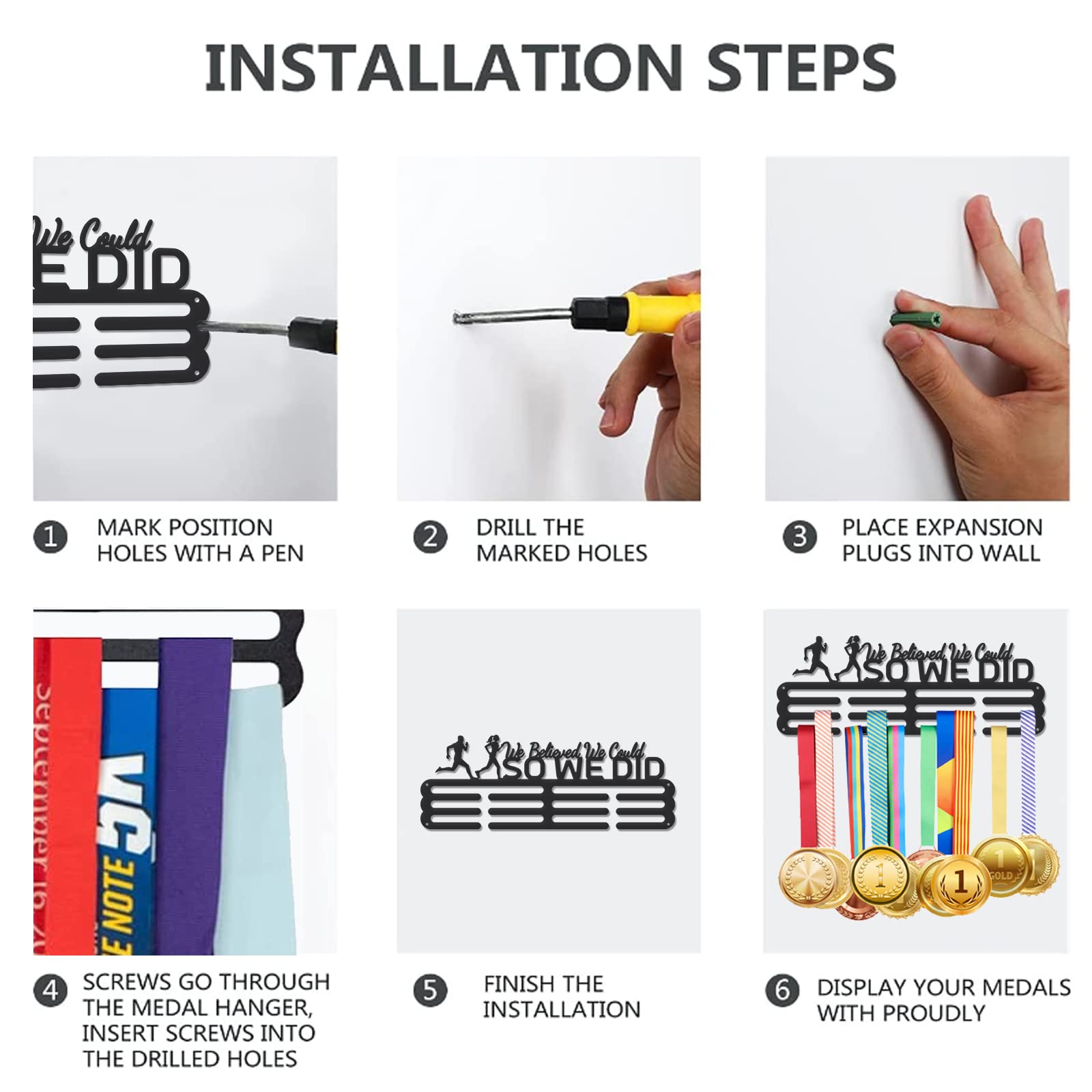 Costume pour cintre d'affichage de médailles personnalisées, gymnastique de présentation des médailles, football, dansant, lutte, fonctionnement. Guide d'Installation Si vous avez beaucoup de médailles à exposer, vous aurez besoin d'un cintre plus grand. L'exposition de ces médailles est également un moyen de partager votre succès avec vos amis et votre famille. Une fois que vous avez déterminé l'endroit où vous voulez exposer le cintre, vérifiez l'espace dont vous disposez et vérifiez les mesures du cintre à médailles. Cadeau parfait -- Les médailles signifient honneur et consécration. Le fait de pouvoir voir constamment les médailles lui donne confiance et l'inspire ; le fait de ranger les médailles sur un cintre les préserve mieux que si vous les aviez simplement jetées dans un tiroir. Medaille - Limics24 - Medals She Believed Could Cintre Médailles | Acier Inoxydable (43Cm... NBEADS Support de Suspension pour Médailles Faits amusants sur les porte-médailles Ils sont livrés avec nos propres accessoires de montage ; ainsi, vous n'aurez pas à vous soucier d'acheter les pièces séparément si vous ne les avez pas. Utilisez les crochets pour suspendre des bijoux, des casquettes de base-ball ou d'autres objets dans leur chambre à coucher. NBEADS Support mural pour médailles - Pour médailles de Contenu de l'emballage -- Vous recevrez 1 cintre de médaille avec vis. Aonite She Believed She Could So She Did - Présentoir à édailles Luineux - Porte-édailles Vous aurez besoin d'un peu d'espace tout autour du cintre, sinon il aura l'air encombré. Excellent ajout à votre maison, à n'importe quel bureau de gymnastique ou d'athlète, salon, ou chambre! L'achat d'un tel présentoir pour votre enfant lui montre à quel point vous êtes fier de ce qu'il a accompli. Plus vous achetez de quantité (unités), plus vous obtenez de remise. Commandez plus de 15 articles différents ou plus de 15 unités du même article pour obtenir la remise de 20 Vous pouvez également utiliser ces cintres pour afficher les récompenses décernées dans les bureaux et les salles de classe.