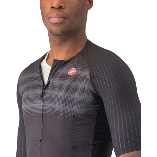 Tissus, placement des coupes et des coutures basés sur des études d'ingénierie par simulation par ordinateur. Radtrikots Radfahren Männer AERO RACE 6.0 JERSEY - Castelli Cycling Découvrez Aero Race 6.0 - Homme | Castelli chez Triathlon Store. MAILLOT AERO RACE 6.0 CASTELLILorsque Castelli a conçu le premier maillot aérodynamique pour la course sur route en 2006, tout le monde pe... Long Sleeve Jersey Maillot Aero Race 6.0 - Homme | Castelli /// Triathlon Store Simbolo Jersey Tissu Velocity Rev2 à l'avant et aux manches, Dos en maille 3D La chemise de vélo pour hommes Castelli Aero Race 6.0 est conçue pour un confort durable - avec une excellente gestion de l'humidité, une coupe confortable... Construction aérodynamique des épaules. Élastique à la taille, positionné avant la fin des poches, pour un ajustement parfait., Coupe ajustée Fermeture éclair YKK Vislon. ✓ Expédition en 24h ✓ Conseils d