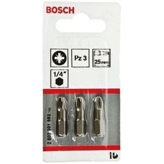 La zone de torsion conique de l’embout absorbe la force et les vibrations du vissage, ce qui améliore l’absorption des pics de couple et permet d’exécuter tout type de tâche. Embouts de vissage qualité extra-dure , Epaisseur: PZ3 , Longueur: 25mm Accessoires bosch perceuse visseuse au meilleur prix | Leroy Merlin Embout Vissage Pz2 Embout De Vissage Qualité Extra-dure Bosch - Réf. 2607001562 - Rubix Embout Bosch 2 607 001 • La zone de torsion conique de l’embout absorbe la force et les vibrations du vissage, ce qui améliore l’absorption des pics de couple et permet d’exécuter tout type de tâche. Matériau : Acier modifié S2 pour une qualité extra dure et une longue durée de vie · Compatibilité : Queue hexagonale 1/4'' pour un montage universel sur... Embout de tournevis Bosch PZ3 Pozidriv pour une fixation précise. Embouts de tournevis Bosch PZ3 25 mm. Tolles Produkt. Référence 2607001562