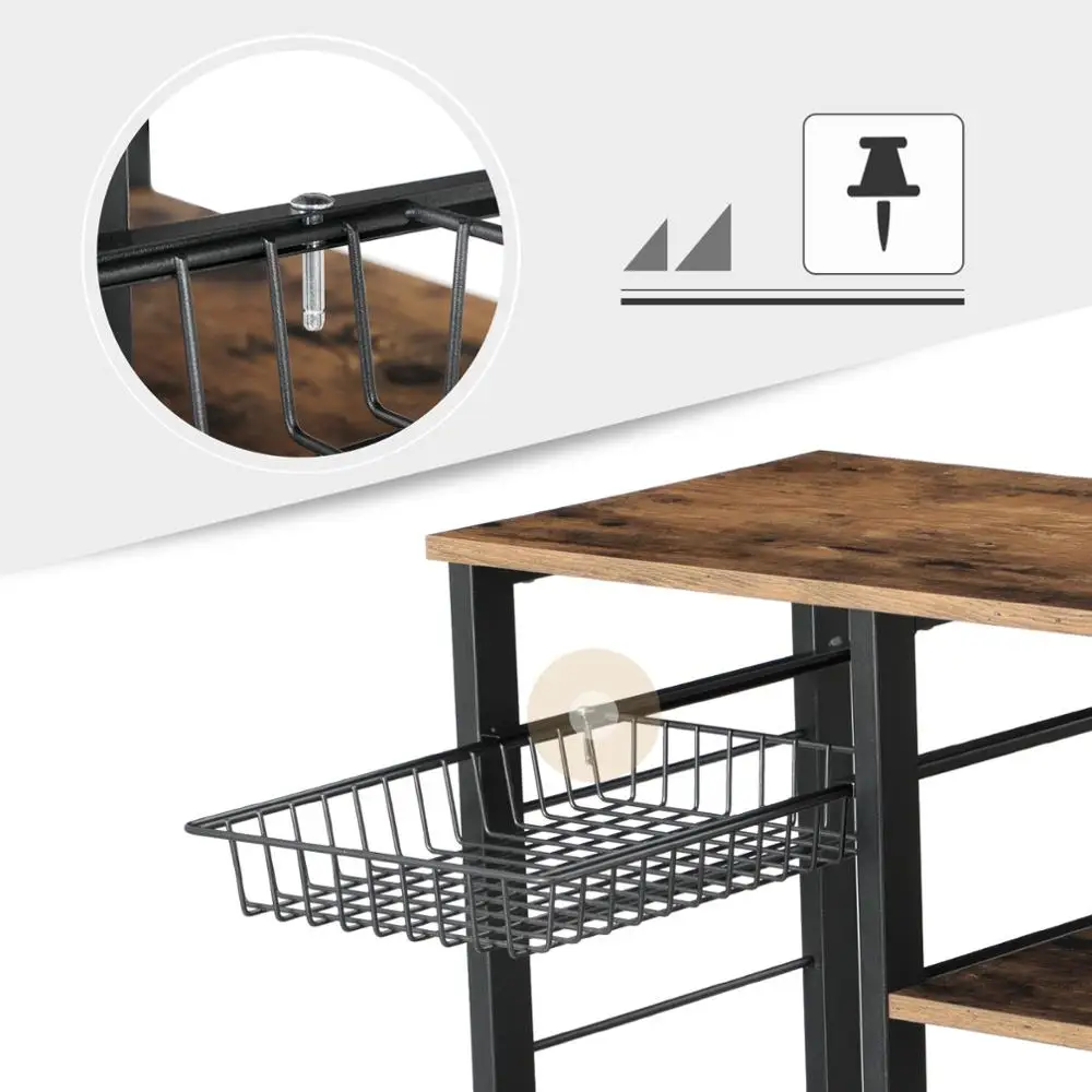 Conçu pour durer : ce support de micro-ondes durable avec rangement combine un cadre en acier ferme avec un panneau de particules P2 marron rustique robuste pour une longue durée d'utilisation. Rappel : Les enfants ne sont pas autorisés à grimper ou à jouer sur le produit. Nous fournissons une paire de gants pour éviter les blessures indésirables lors de l'assemblage. Étagère de boulanger de cuisine : cette étagère de boulanger de cuisine est fabriquée en panneaux de particules et en fer. Que ce soit dans la cuisine, le salon ou le bureau, il se démarquera facilement par sa fonctionnalité et son style Dimensions du produit : 60 x 40 x 178 cm. Étagère de rangement pour four à micro-ondes de cuisine industrielle, étagère debout,Trouvez les Détails et le Prix sur Support en métal, conteneur en métal de Étagère de rangement pour four à micro-ondes de cuisine industrielle, étagère debout - GOOD SELLER CO., LTD Étagères utilitaires, assemblage facile et rapide. 1 manuel de montage (français non garanti)., 1 outil d'accessoires. De plus, ses dimensions sont de 65 cm (longueur) x 40 cm (largeur) x 139,7 cm (hauteur) Tribesigns Étagère de boulangerie à 5 niveaux avec tiroir, support de C'est votre meilleur choix pour le rangement et économiser de l'espace L'étagère à 4 niveaux peut contenir des grille-pain, des épices, des assiettes, des assiettes et tout autre objet. 4 crochets sont pratiques pour accrocher des... Le support en fer est robuste et durable, et la planche en bois est imperméable et anti-friction. Permet de garder votre maison propre, bien rangée et organisée Matériau : panneau de particules, fer peint. Étagère De Boulangerie Et Crochets 4 Niveaux Bois D'ingénierie Vous pouvez rapidement assembler cette étagère de rangement en 10 minutes seulement.