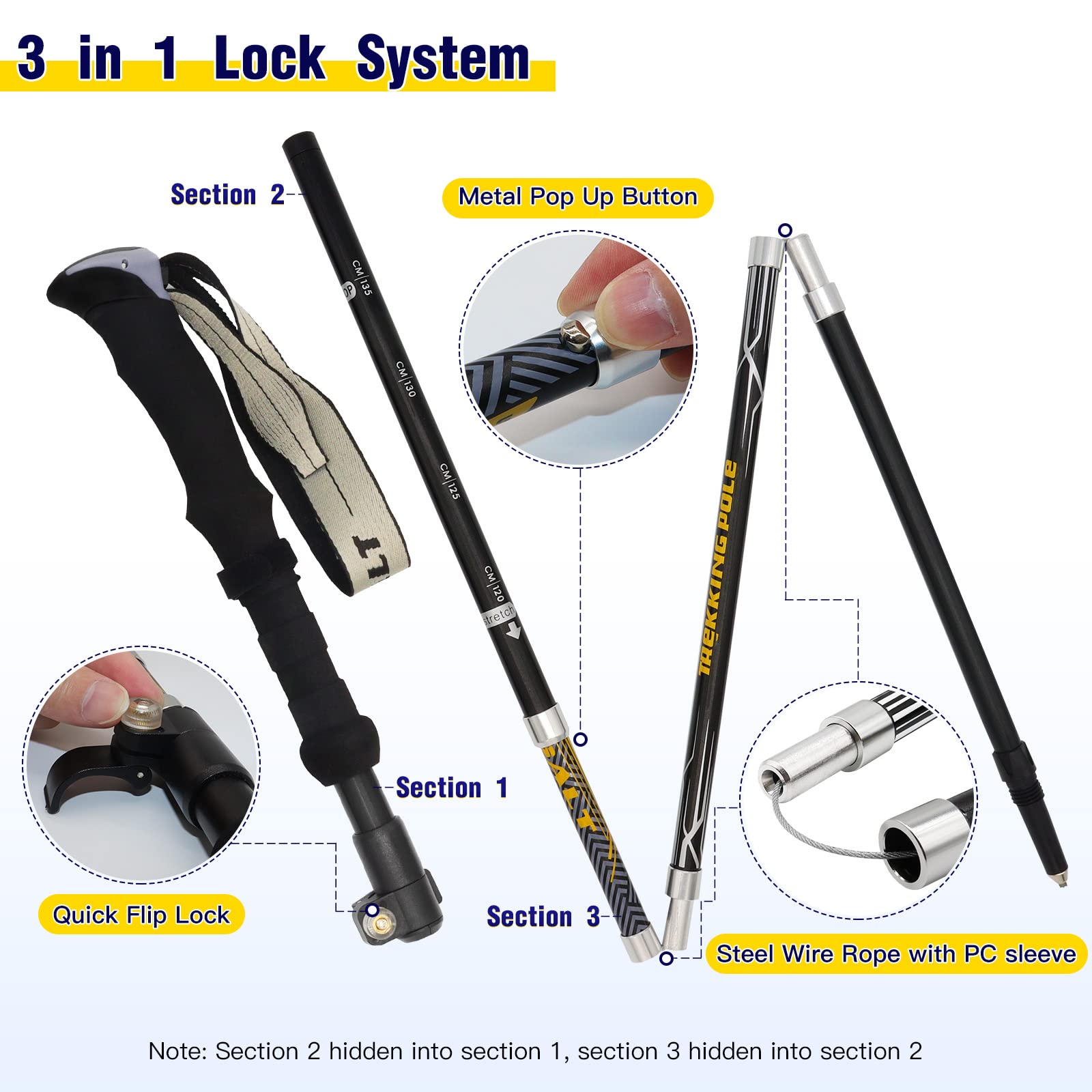 HUGSEE Bâtons De Randonnée Pliables Pour Homme Et Femme