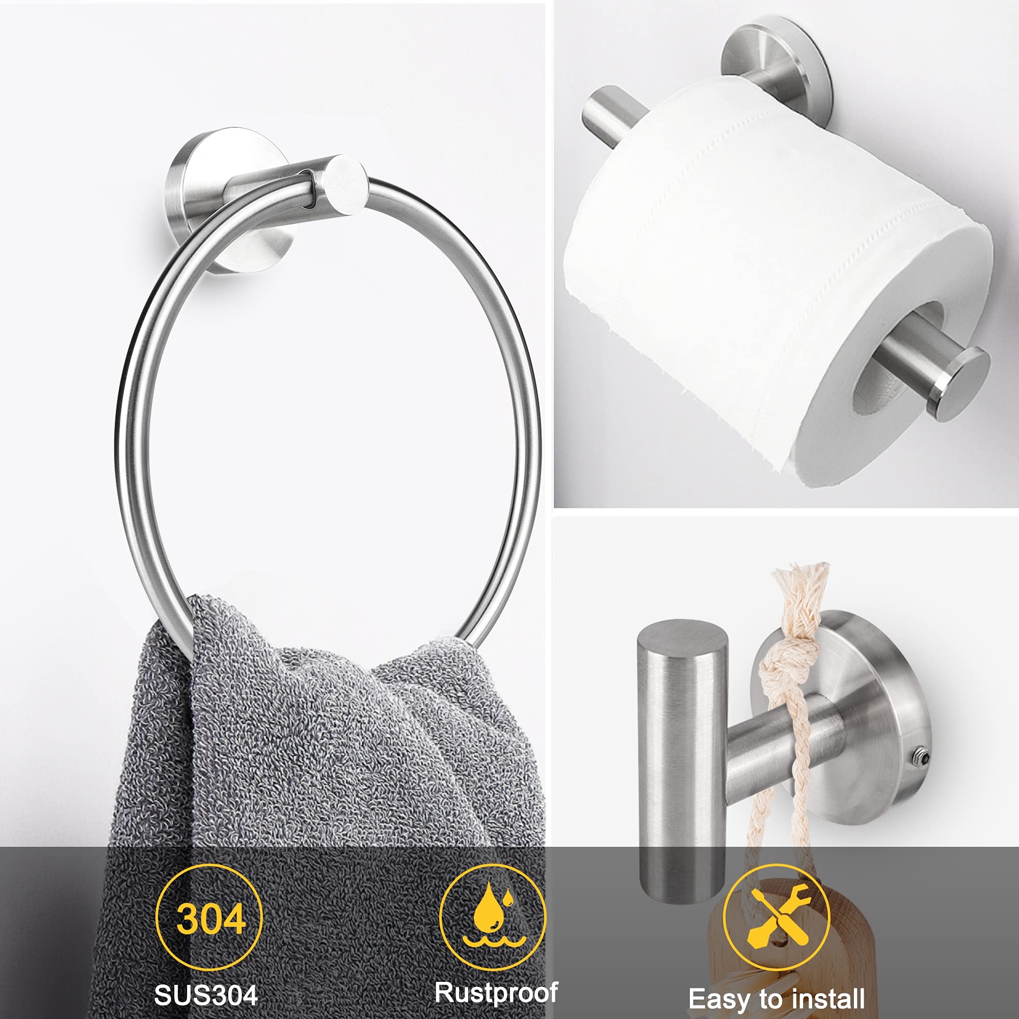 Matériau : acier inoxydable SUS304., Méthode d'installation : montage à vis. Facilite l'organisation et maintient votre salle de douche organisée et bien rangée, assurant que les serviettes, peignoirs et rouleaux de mouchoirs sont facilement accessibles et correctement rangés. FAIRGIA Accessoires De Salle De Bain Chromés, Ensemble De Matériel De Salle De Bain Comprenant Un Porte-papier Toilette De 61 Cm, Porte-serviette, Anneau Porte-serviette, Crochet Pour Peignoir, 4 Facile à installer : le colis contient tout le matériel d'emballage nécessaire pour l'installation de tous les produits et accessoires, vis, boulons d'expansion et ancrages, instructions d'installation (français non garanti) et installation facile. Acier inoxydable sus304 de haute qualité, solide et durable, de haute qualité. Contenu de l'emballage : 1 support de papier toilette. Finition élégante : le porte-serviettes dispose d'une finition lisse et d'un design élégant, assurant un toucher doux sur les mains. Finition argent brossé : finition argent brossé mat, avec une combinaison de lignes épurées et raffinées pour un style haut de gamme. Caractéristiques : Couleur : argent brossé., Poids total : 0,8 kg. Plus de 100,000 produits ✓ Livraison gratuite ✓ Droit de retour de 365 jours ✓ Garantie jusqu'à 5 ans ✓ Différents moyens de paiement ✓ Plus d'un million de clients satisfaits Si possible, mesurez 66 cm d'espace avant d'acheter pour voir si cela correspond à vos besoins. Ensemble D'accessoires De Salle De Bain - Comprend Une Barre Porte-serviette De 60 Cm, Un Porte-serviette De 21,1 Cm, Un Porte-papier Toilette, Des Crochets... Argent brossé avec une combinaison de luxe et de style moderne, laissez le haut de gamme et la mode parfaitement entrer et décorer votre maison et votre salle de bain, augmentant le sens de la mode et de la beauté. Design de vis dissimulées : les vis de montage ne sont pas visibles, ce qui offre un joli aspect propre. Haute qualité : le matériel de salle de bain doré est fabriqué en acier inoxydable 304 de qualité, et la finition dorée brossée peut bien prévenir la corrosion et la rouille. La surface argentée brossée ajoute une touche moderne et tendance à votre décoration d'intérieur et de salle de bain. Crochet salle de bain - Porte-peignoir 1 tête PURE laiton chromé