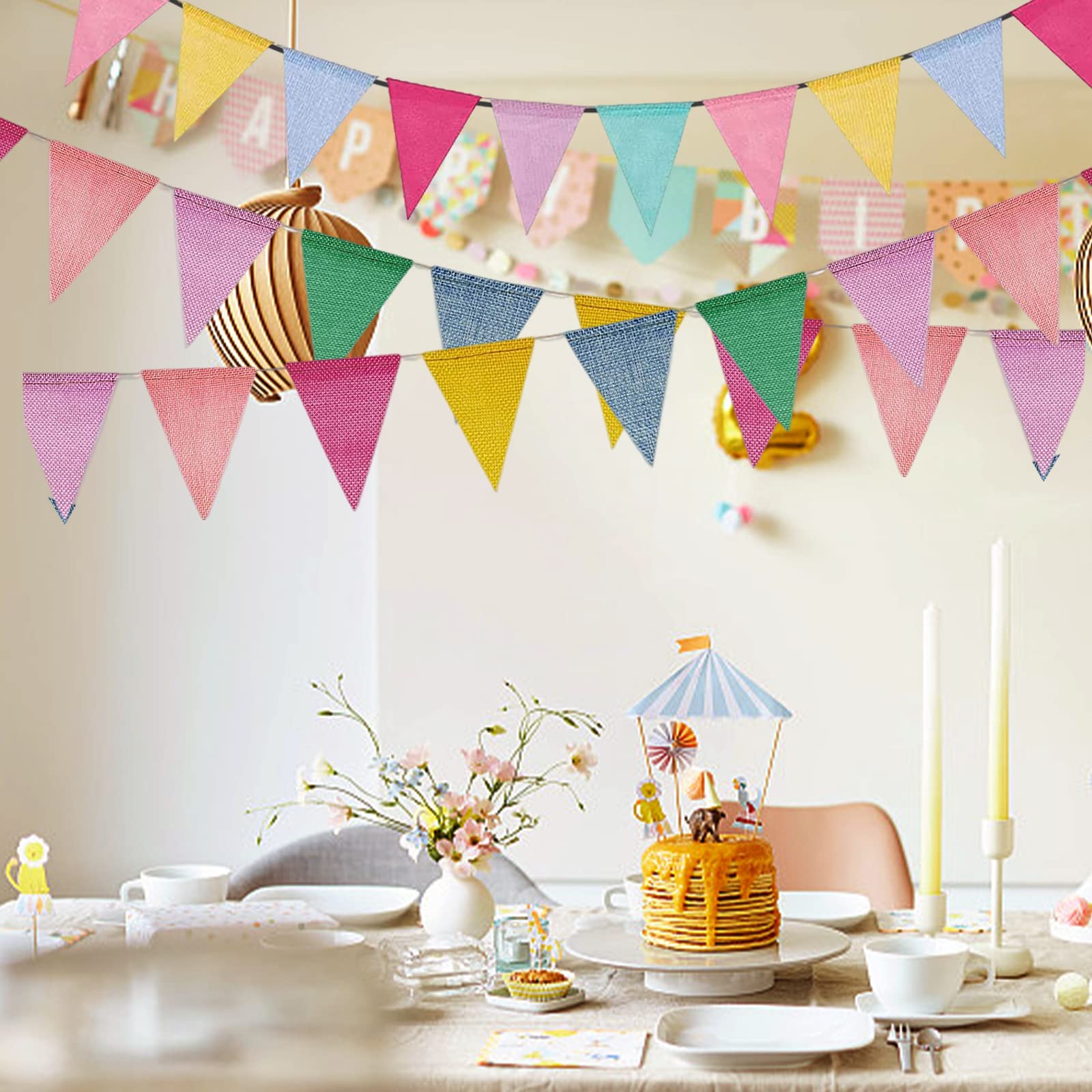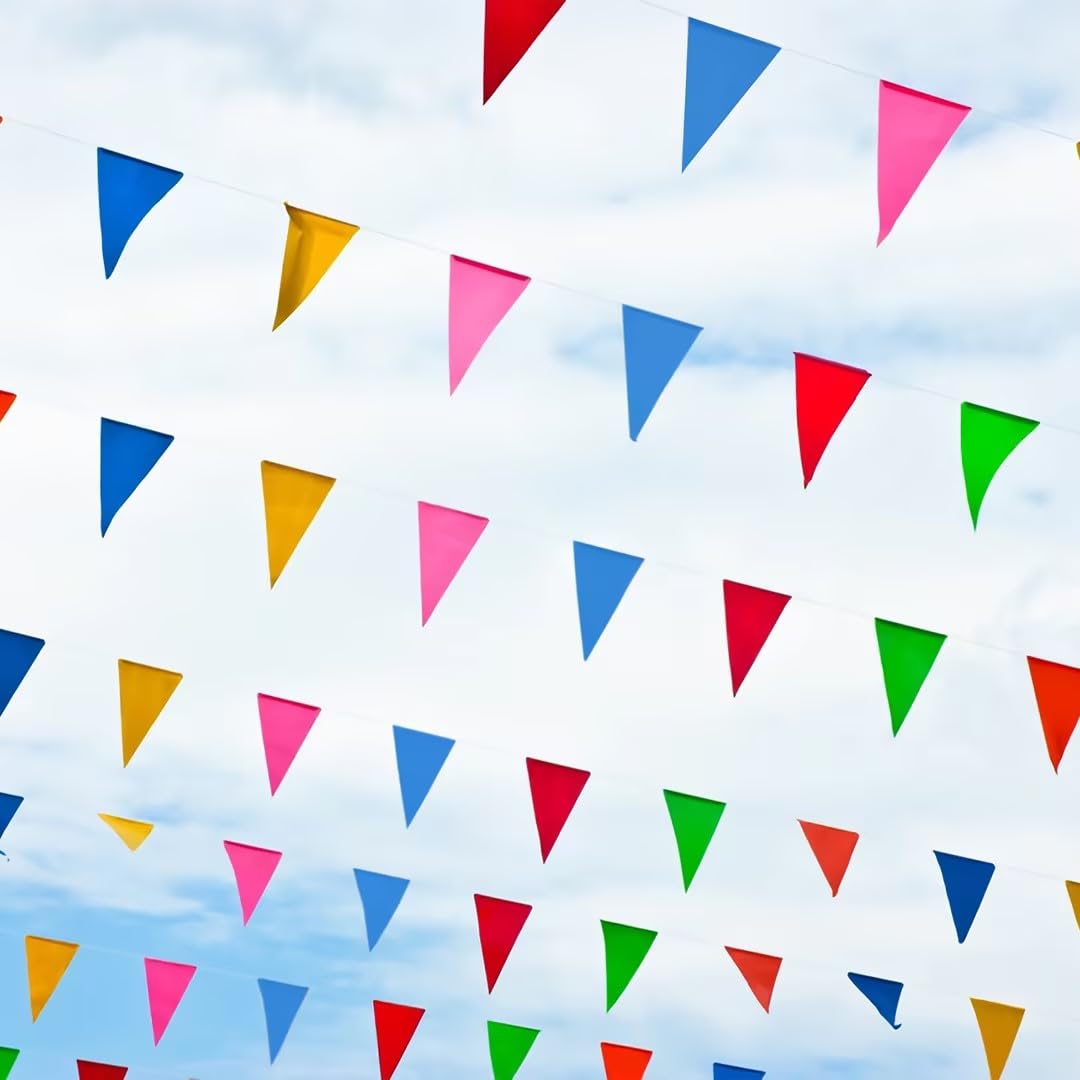 Description : , Couleur : multicolore., Taille : 5 m., Matériau : papier. Nombreuses utilisations : elles sont parfaites pour les fournitures de fête, les décorations de fête prénatale, les fêtes d'anniversaire, les mariages, les remises de diplômes, les décorations de fête prénuptiale, les décorations d'enterrement de vie de jeune fille, les décorations de fiançailles. Lot de 5 fanions multicolores triangulaires - Décoration d Design : chaque drapeau est méticuleusement conçu pour fournir une décoration attrayante pour votre jour spécial, bannière murale, bannière de fanions de... Facile à assembler : il suffit d'ouvrir l'emballage pour l'accrocher directement car ils ont été cousus ensemble, ce qui peut vraiment vous faire gagner du temps et de l'énergie. Fanion Tissu PT Haahoos Guirlande De Fanions Triangulaires Multicolores De Fanion Guinguette Emballage : sac en polypropylène. Il n'y a pas d'odeur terrible, parfaite pour les décorations de fête prénatale pour fille et garçon. Contenu de l'emballage : la bannière de fête mesure environ 15 cm de large et 16 cm de long, 5 m de long avec 12 drapeaux triangulaires colorés. Guirlande fanions triangulaires multicolore 1er prix pour décorer à petit prix. Cette guirlande en plastique de 10 mètres de longueur...