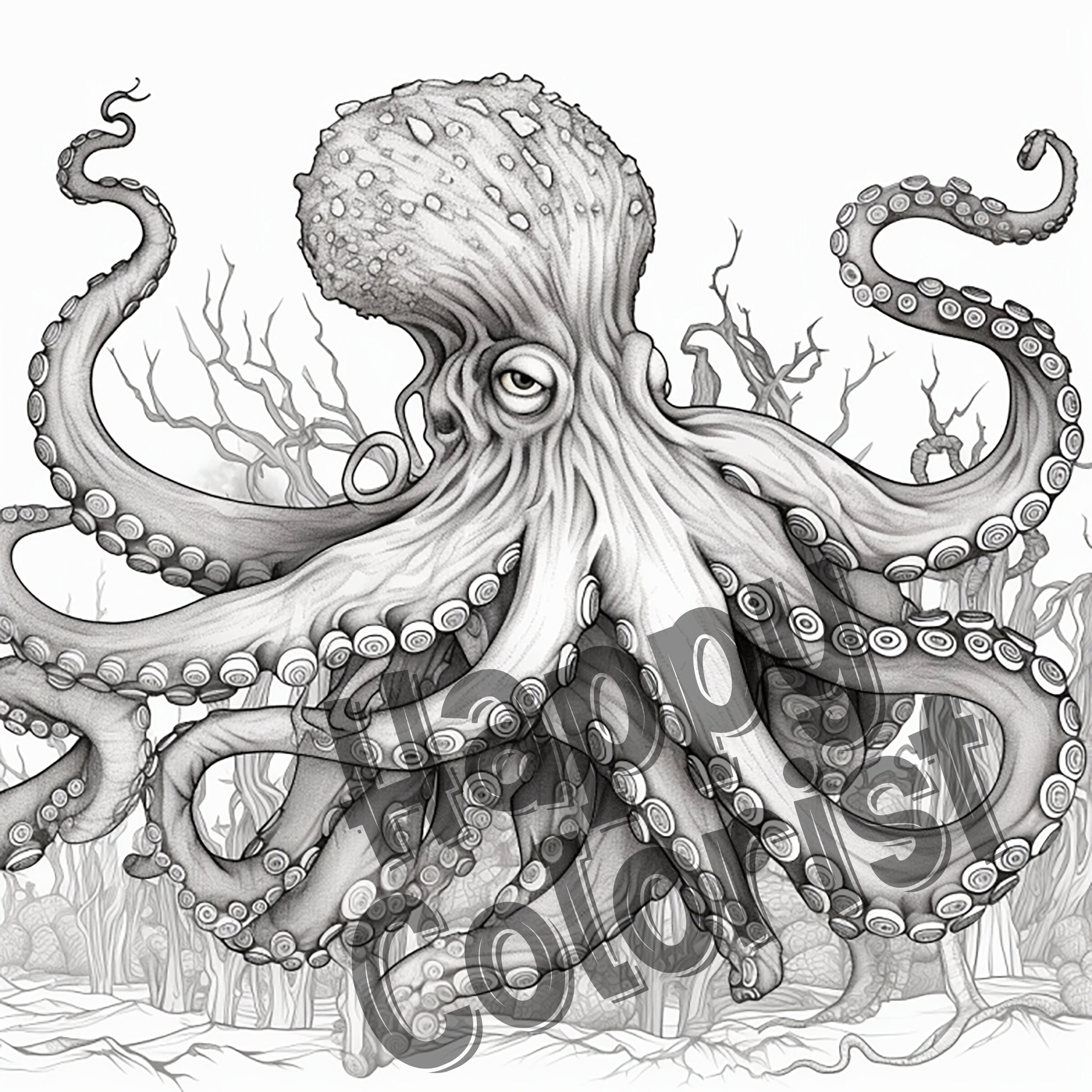 An adult coloring page for ocean octopus with plants in the style of high detailed | Premium AI-generated image Outline Sketch An Octopus's Head With A Big Mouth Coloring Page Drawing... Mandalas A Colorier Adulte The Awesome Octopus: A Coloring Book For Edgy Teens And Cool Livre Coloriage Adulte