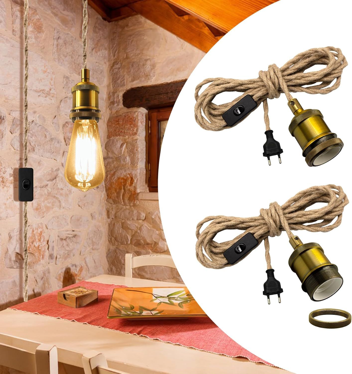 Longueur du fil : 95 cm (câble PVC) Les délais de livraison peuvent varier en fonction de l'emplacement de destination. Marque. LEDSone · Couleur. Cuivre brossé · Matériau. Métal · Forme. Ronde · Caractéristique spéciale. Portable · Dimensions du produit. 13,5l x 24H centimètres Nous vous déconseillons de faire appel à un électricien ou à un installateur avant d'avoir reçu tous les articles dans un état satisfaisant Source d'alimentation : AC110V-240V Emballage inclus : 1 x pied de lampe suspendue Spécifications : Type de base : E27 Matériau : métal, tension : 110 V-240 V, culot de l'ampoule : E27, installation rapide et facile. Matériau : Métal + PVC VINTAGE LUMIÈRE PLAFOND Industriel Ferme Chasse Support Rustique Abat... Semble attrayant et tendance dans votre kit de luminaire suspendu avec abat-jour existant. Lampe Supendue LEDSone Abat-jour De Plafond Vintage En Métal Ondulé Lampe Industrielle Plafond Couleur de l'article : Cuivre brossé Type d'élément : Lampes suspendues 1 x assembler des pièces (ampoule n'est pas inclus) Quantité de support de lampe :1 Lustre Suspension Industrielle Cage Géométrie Nid Style Vintage, Lampe