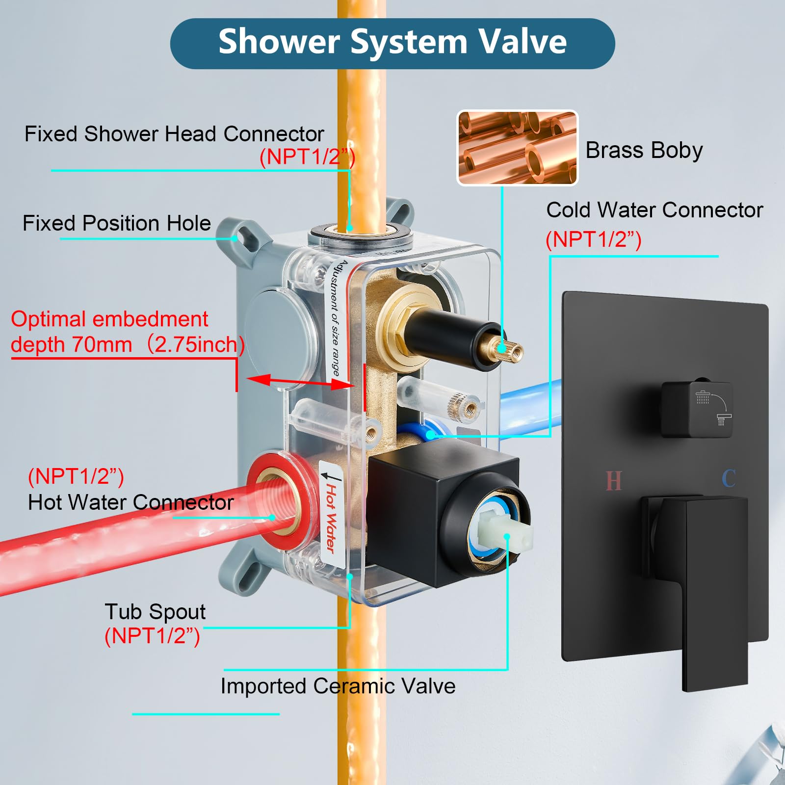 SUNZOE Ensemble De Robinet De Douche Avec Bec De Baignoire, Noir Mat Anti Brulure Pression Equilibree Ensemble De Robinet De Douche De 203 Cm Pommeau De Douche Mural Systeme De Douche A Description du produit Le robinet de douche Midanya est votre choix idéal pour décorer ou mettre à jour vos baignoires. Valve en laiton : valve en laiton super robuste conçue pour durer longtemps. 【Garantie】: n'hésitez pas à nous contacter si vous avez des problèmes liés à ce produit, nous allons certainement vous aider à résoudre le problème et vous donner la réponse la plus satisfaisante immédiatement. Robinet Salle De Bain Avec Mitigeur Midanya Ensemble De Robinet De Douche En Chrome Poli, Pommeau Mitigeur De Douche Avec Douchette 【Poignées à 3 niveaux】 : nous adoptons la poignée concise à 3 niveaux pour régler la température et le débit. Bec haut débit : cet ensemble est conçu pour la pression d'eau standard américaine avec un grand débit d'eau. Midanya assurez-vous que chaque produit est testé avant de quitter l'usine, afin que vous puissiez obtenir la meilleure expérience d'utilisation. Nous sélectionnons strictement une valve en laiton de haute qualité, une ouverture et une fermeture fluides, anti-infiltration et étanche, durable. La valve de la douche est la partie centrale la plus importante. Qualité fiable : le corps du robinet de douche est fabriqué en matériau sélectionné de haute qualité afin de promettre durabilité et fiabilité. Midanya assurez-vous que chaque produit est testé avant de quitter l'usine, afin que vous puissiez obtenir la meilleure expérience d'utilisation Totalement nouveau design transmet à l'utilisateur un style moderne et une perspective élégante.