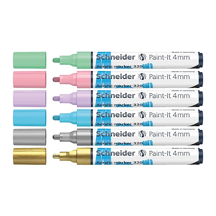 Marqueurs acryliques 2 mm pour travaux créatifs. CHARLIE BEARS PIGGLEDY Avec Nez Design Artistique Avec Stylos Acryliques. Par Moi-Même EUR 51,12 Haute couvrance, séchage rapide et grande brillance des couleurs · Encre optimisée pour presque toutes les surfaces : bois, métal, papier, carton, pierre, etc... Les marqueurs acryliques Paint-It permettent de peindre presque tout : bois, carton, métal, papier et bien plus encore Le débit de l'encre à base d'eau et à faible odeur est modulé par une valve - pour s'adapter parfaitement à vos besoins. Le bon outil pour tous vos projets. L'encre optimisée convient à presque toutes les surfaces: bois, métal, papier, carton, pierre, etc. Ils sèchent rapidement et sentent à peine grâce à l'encre à base d'eau Forte adhérence, séchage rapide, haute brillance des couleurs. Le marqueur pour les créateurs. Avec un vernis transparent en option, elle est particulièrement résistante Du lettrage pour le journal à la nouvelle peinture pour vélo - avec la brillance... CHOSCH LOT DE 5 Stylos Rétractables Pour Filles Et écoles Couleurs Arc Du lettrage au journal à la peinture de vélo – avec la brillance des couleurs des stylos acryliques Paint-It chaque idée devient une œuvre d'art
