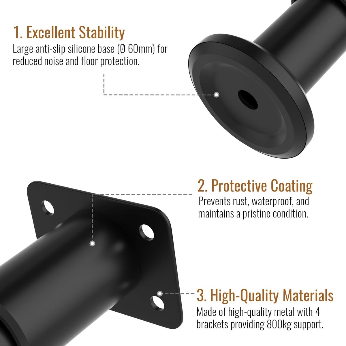 Parfait pour les bureaux, les tables, les meubles et les armoires. Conception réglable : Chaque pied de meuble mesure 40 x 40 x 150 mm/1,57 x 1,57 x 5,9 pouces, avec une plage de réglage de 1,7 cm. La capacité de charge totale de 4 pieds de meuble réglables peut atteindre environ 100 kg.Matériau robuste : les pieds de meubles réglables sont fabriqués en alliage d'aluminium de haute qualité, robustes et durables. La surface adopte un processus de... Pieds de meubles - LARGEIGHT - Lot de 4 - Métal noir - Charge Design simple et moderne. Pieds De Lit Lot De 4 Pieds De Meubles Réglables, Pieds Triangulaires Réglables De Pied De Bureau Couleur : noir. Quantité : 4 (vis incluses) Design simple et moderne. Résistant à la corrosion. Protégez votre sol contre les rayures. Il est parfait pour les bureaux, les tables, les meubles et les armoires. Cet article Matériau : alliage d'aluminium Quantité : 4 (livrés avec vis) , Charge maximale : 100 kg