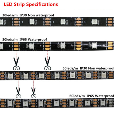 【DC 5V avec direction individuelle】Bande LED WS2812B programmable avec puce IC intégrée dans LED 5050 SMD. La bande LED dispose d'un ruban adhésif à l'arrière, ce qui permet de la fixer facilement à un mur ou à une autre surface si nécessaire. BANDE LED,12V WS2811-Black PCB-1m 30 IP30--Bande lumineuse étanche 4 en 5050 5V 34.6W/m 144 Leds par mètre Bande lumineuse à Led Ws2812B... Utilisations multiples : idéal pour les hôtels, les bars, les panneaux publicitaires, les décorations d'Halloween et de Noël ou les fêtes de mariage. Strip 60 LEDs Per Meter Bande LED WS2812B - Adressable Individuellement Et Dynamique | LEDYi Bande De Led Adressable Offre des effets statiques, des effets de suivi, 256 niveaux de luminosité et un affichage des couleurs sur 24 bits. En tant que projet de bricolage, vous pouvez raccourcir, étendre ou plier selon vos besoins. Stabilité accrue, excellente performance, ultra lumineux, faible atténuation de la lumière et durée de vie plus longue. Ws2812B Ws2811 Sp621E Contrôleur De Bande Led Sp621E Musique Bluetooth...