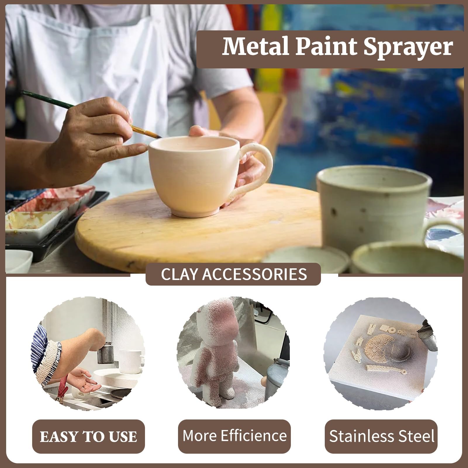 Type d'article : atomiseur de poterie. Matériau : acier inoxydable., Couleur : argenté. Il y a un petit tube à l'intérieur du récipient en métal du bas vers le haut. MOUMOUTEN Pulvérisateur De Peinture De Poterie 200 ML, Outil D'argile En Acier Inoxydable Atomiseur Glaces Pots Pulvérisateurs En Céramique Utilisés Pour Créer un Effet Spécial Blow Glaze Texture Arti Lorsque vous soufflez de l'air à travers le tuyau supérieur, vous créez une aspiration qui tire le liguide à travers le tube vertical, et le liquide sort des pulvérisateurs comme une brume., 5., Fabriqué en acier inoxydable de haute qualité, antirouille, résistant à la corrosion et Caractéristiques : État : neuf. Veuillez prendre le vrai comme standard. Pulvérisateur de peinture de poterie en acier inoxydable, outils d'atomiseur de glaçure, argile, céramique, peinture en aérosol, léger, Durable... Cet atomiseur en métal est utilisé pour pulvériser des émail ou des oxydes dans l'argile fonctionne facilement et rapidement avec la bouche. Fabriqué en acier inoxydable de haute qualité, antirouille, résistant à la corrosion et Environ 16 x 7,8 x 9,5 cm (200 ml). Lorsque vous soufflez de l'air à travers le tuyau supérieur, vous créez une aspiration qui tire le liguid vers le haut à travers le tube vertical, et le liquide sort de la vaporisation. Ce qu’il faut savoir sur l’argent : Cours de l'argent et prix de l'argent Pulvérisateur Glaçage Céramique Atomiseur Céramique En Acier Inoxydable - Pour Glaçage Et Peinture Poterie 200ml Effet Peinture Spécial Capacité : 100 ml, 200 ml, 300 ml (en option) Dimensions du colis : Environ 16 x 7,8 x 7 cm (100 ml).
