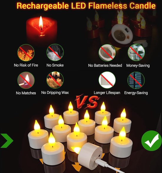 【Compagnon pour les enfants et les animaux domestiques】: La bougie chauffe-plat rechargeable n'a pas de flamme qui peut brûler, évitant ainsi le risque d'incendie ou de brûlure. ZIYOUDOLI Lot de 12 bougies chauffe-plat rechargeables 【Fonction de minuterie】: après que la bougie électrique allume l'interrupteur inférieur, la bougie s'allume pendant 4 ou 6 heures, puis s'éteint automatiquement. Bougies Led Flamme Vacillante Rechargeable Bougies Chauffe-plat Rechargeables Sans Flamme, 12 LED Kaarsen Avec USB-C Pour La Bougies Led Rechargeables 【Contenu de l'emballage】: 12 bougies chauffe-plat LED, 12 tasses à thé LED, 1 station de charge, 1 télécommande, 1 câble USB, 1 connecteur de charge, 1 manuel d'utilisation (français non garanti). Commodité rechargeable] : nos bougies chauffe-plat rechargeables d'ambiance sans effort avec la facilité de recharge. La base de charge magnétique assure une... Si vous avez des questions, n'hésitez pas à nous contacter. Utilisez la fonction minuterie pour éviter les ennuis. Bougies LED rechargeables par USB : chaque bougie LED a une batterie rechargeable intégrée qui peut éclairer pendant plus de 24 heures.