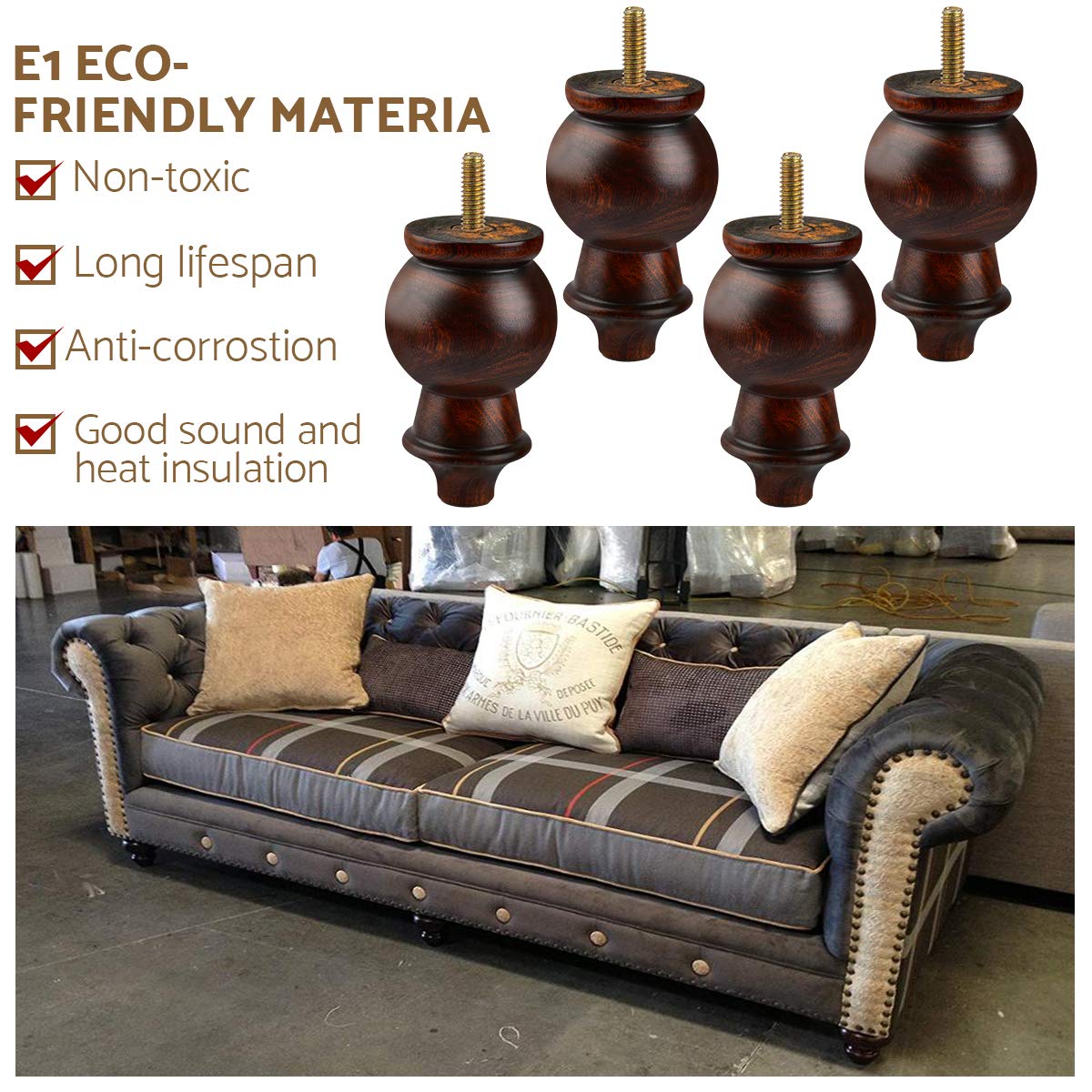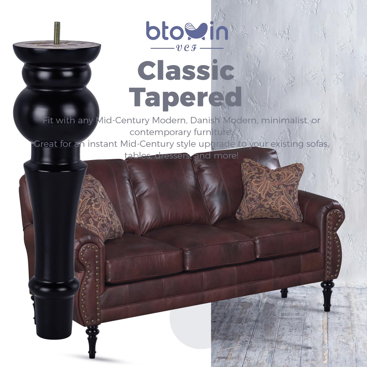 diams; Mise à niveau & RETROFIT - Le remplacement des anciens pieds de meubles est un moyen économique et efficace de renouveler votre décoration intérieure ou d'augmenter la hauteur des meubles bas pour répondre à vos besoins. ♦ Parfait pour les projets de meubles DIY – Convient à tous les types de meubles de toutes les couleurs, canapé, canapé, meuble TV, fauteuil, lit, banquette, armoire, table basse, table de chevet, armoire, table basse, armoire, table à thé, meubles de bureau, etc. Pied Meuble Lot De 4 Pieds De Meubles En Bois Massif Incliné 20cm, Pieds De Pied De Meuble 10cm ♦ Mise à niveau et rétro - Le remplacement des anciens pieds de meubles est un moyen économique et efficace de renouveler votre décoration d'intérieur ou d'augmenter la hauteur des meubles bas pour répondre à vos besoins. <br/♦ Protection de sol bonus - Livré avec 4 protections de sol en caoutchouc robustes pour garantir que vos planchers en bois restent dans l'état d'origine sans rayures. ♦ Les pieds en bois ne sont que des remplacements de meubles, pas d'artisanat. Description du produit Caractéristiques : ♦ Condition : 100 % neuve. ♦ Diamètre supérieur : 5,8 cm. Remarque : ♦ En raison du bois naturel, il est normal qu'il y ait une petite différence de taille, de motif et de couleur de l'article. Fabriqué en bois d'hévéa, suffisamment solide pour des années d'utilisation [Deux forets de positionnement de menuiserie inclus] : le lot de 4 pieds de canapé... ♦ Obtenez les nouvelles jambes en 10 minutes. Btowin - Patas Para Muebles De Madera Maciza De 10 Pulgadas Avertissement De Sûreté Utilisez toujours les outils appropriés lors de l'installation des pieds. Laissez les nouvelles jambes réparer dans les 10 minutes. Ces pieds de meubles ont des coussinets épais qui resteront en place pendant des années Gardez les jambes au sec pour maintenir la stabilité et la durabilité. ♦ Matériau : bois de chêne. Rafraîchissez parfaitement vos meubles pour Noël ou d'autres jours fériés pour les invités. Btowin Lot De 4 Pieds De Meubles Ronds En Bois Massif Avec Plaque De Montage Et Vis Pour Canapé, Chaise Ottomane Et Canapé 12,7 Cm. 4.8 385 avis. Btowin Lot... ♦ Diamètre inférieur : 3,8 cm., Installation : ♦ 1., Déterminez l'emplacement d'installation., ♦ 2., Vissez les pieds en bois avec la plaque de montage., ♦ 3., Connectez les pieds au sol du meuble avec les mêmes vis., ♦ 4., Serrez les vis. - Tous les accessoires sont fournis et sont faciles à installer.