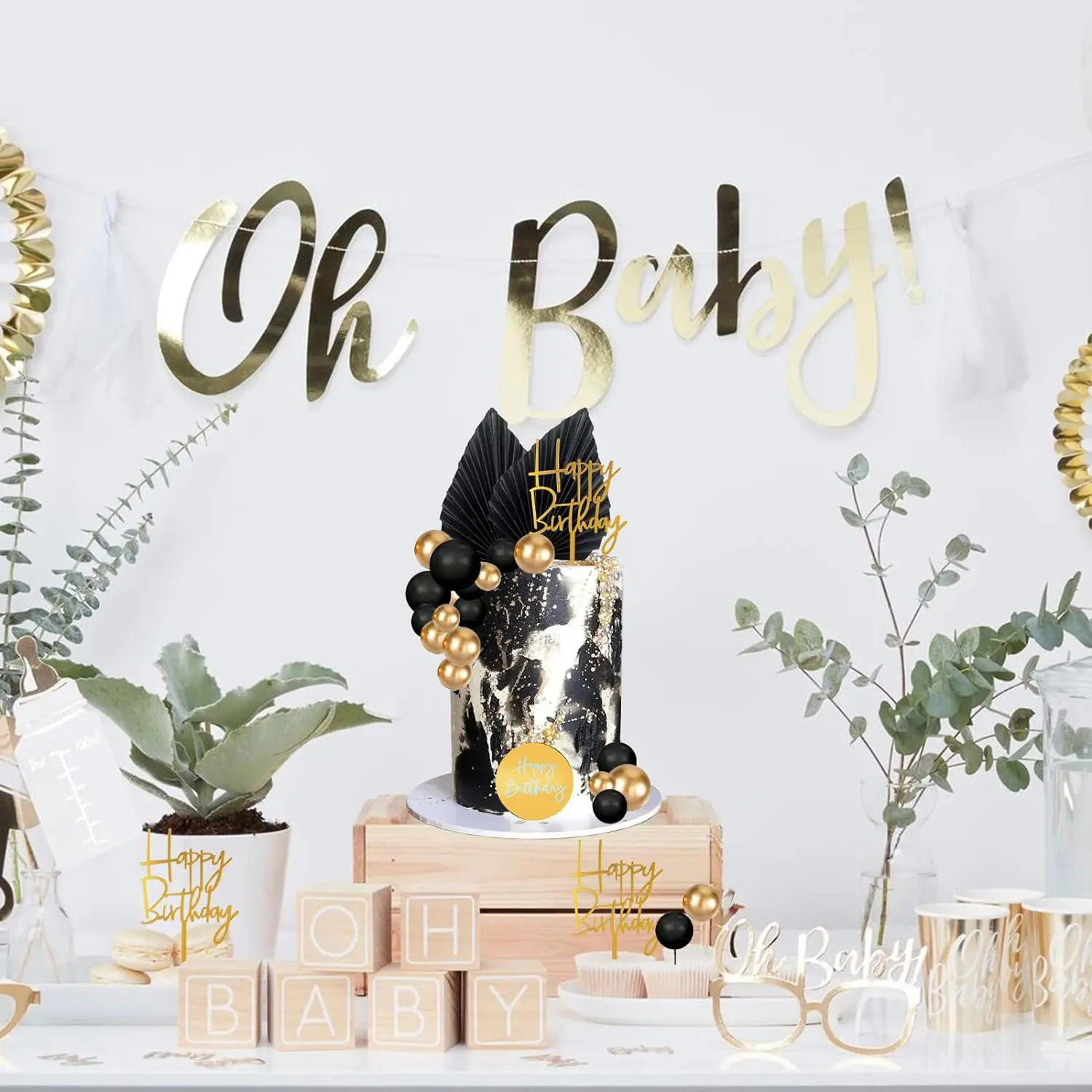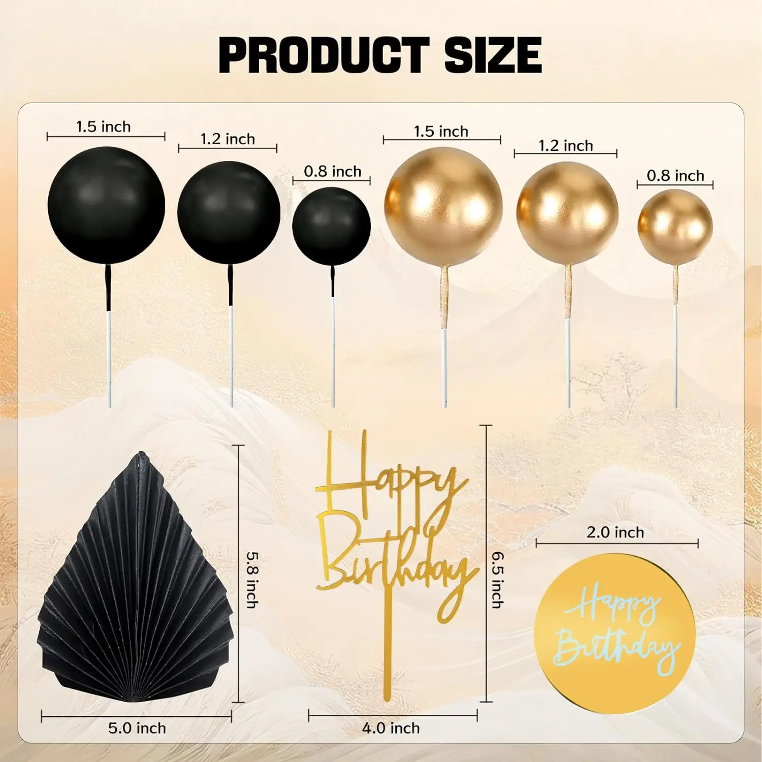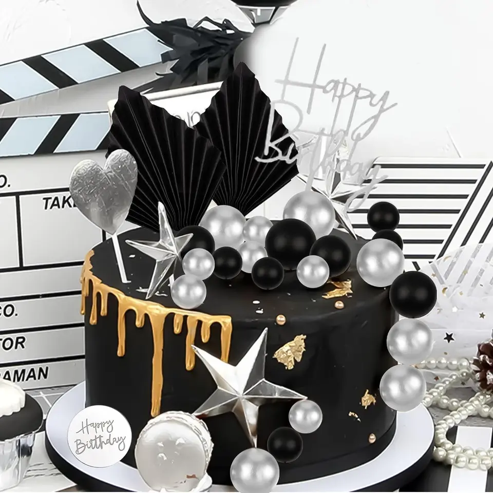 Lot De 4 Décorations De Gâteau En Feuille De Palmier - 10 Boules De Gâteau Dorées - Drapeau Pliable En Feuille De Palmier - Insert De Décoration De