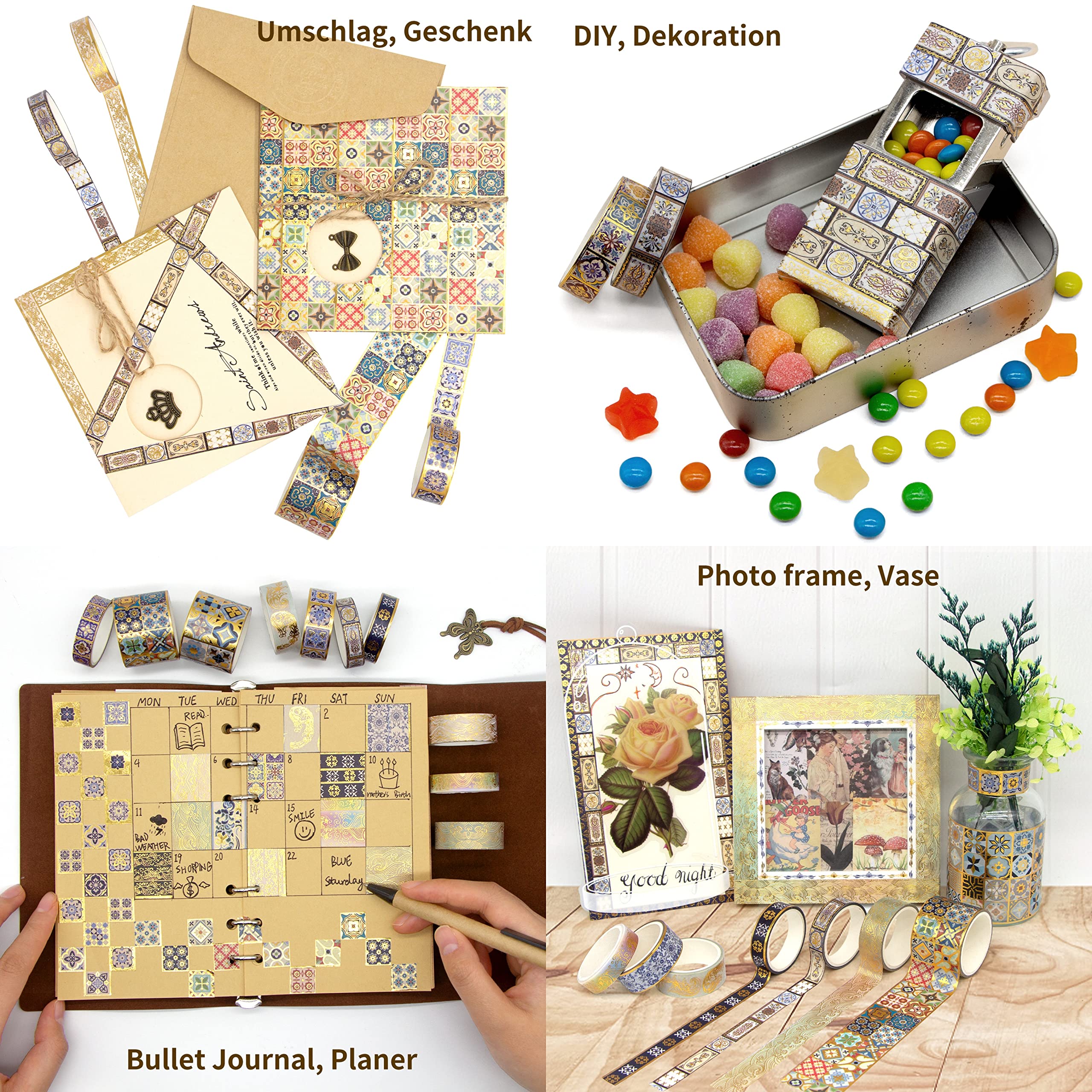 Lot de 24 rouleaux de ruban adhésif Washi pastel coloré de Donnez vie à votre créativité avec ce magnifique ruban washi vintage au style aquarelle et à l'huile vif. Facile à déchirer et à recoller, de sorte que même les débutants peuvent commencer sans problème et offrir une expérience agréable. Que ce soit à la maison, à l'école ou au bureau, ce lot de rubans de papier peut ajouter du charme à n'importe quel projet. Aluwax Ruban Botanico Forwaarss Washi Tape Set Vintage Lot De 16 Rouleaux De Pour Bricolage, Artisanat, Magazines, Scrapbooking, Journaux De Bullet(5/10/15/30 Mm Ruban Adhésif Décoratif Chaque design ajoute une atmosphère nostalgique rêveuse à votre journal, scrapbooking et objets faits à la main, ce qui le rend parfait pour une créativité inspirante. Parfait pour les anniversaires, les vacances ou les surprises scolaires. Cadeau parfait : ce kit de rubans de cire est conçu dans une belle boîte rétro et est un cadeau attentionné pour les étudiants, les artisans, les amateurs de journal intime et les créatifs de tous âges. Taille du produit : 16 rouleaux au total, 15 mm, 20 mm et 30 mm de largeur Dimensions de l'emballage : 9,5 x 8,5 x 4 cm Caractéristiques : styles riches, motifs clairs, bricolage gratuit Ajoutez ce ruban adhésif washi à votre panier et transformez facilement les objets du quotidien en œuvres d'art avec votre imagination. Présenté dans une charmante boîte de style vintage, ce lot de ruban washi est le cadeau parfait pour les étudiants, les amateurs de bricolage, les amateurs de bullet journal et toute personne qui aime ajouter un peu de créativité à leur vie. Lot de rubans adhésifs Washi à fleurs | Ensemble de ruban adhésif en Washi vintage avec fleurs pour agenda violet, organisateur de mariage | Journal... Que vous souhaitiez esquisser un journal, embellir le bord d'un scrapbooking ou ajouter une touche personnelle à des objets du quotidien tels que des étuis de téléphone portable ou des câbles, ces rubans washi sont faciles à utiliser et ne laissent aucun résidu collant.