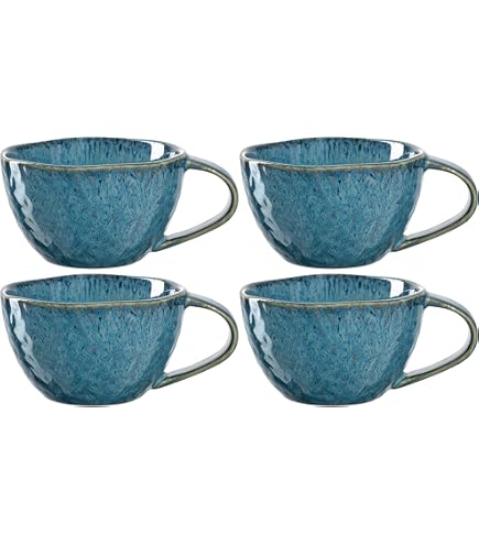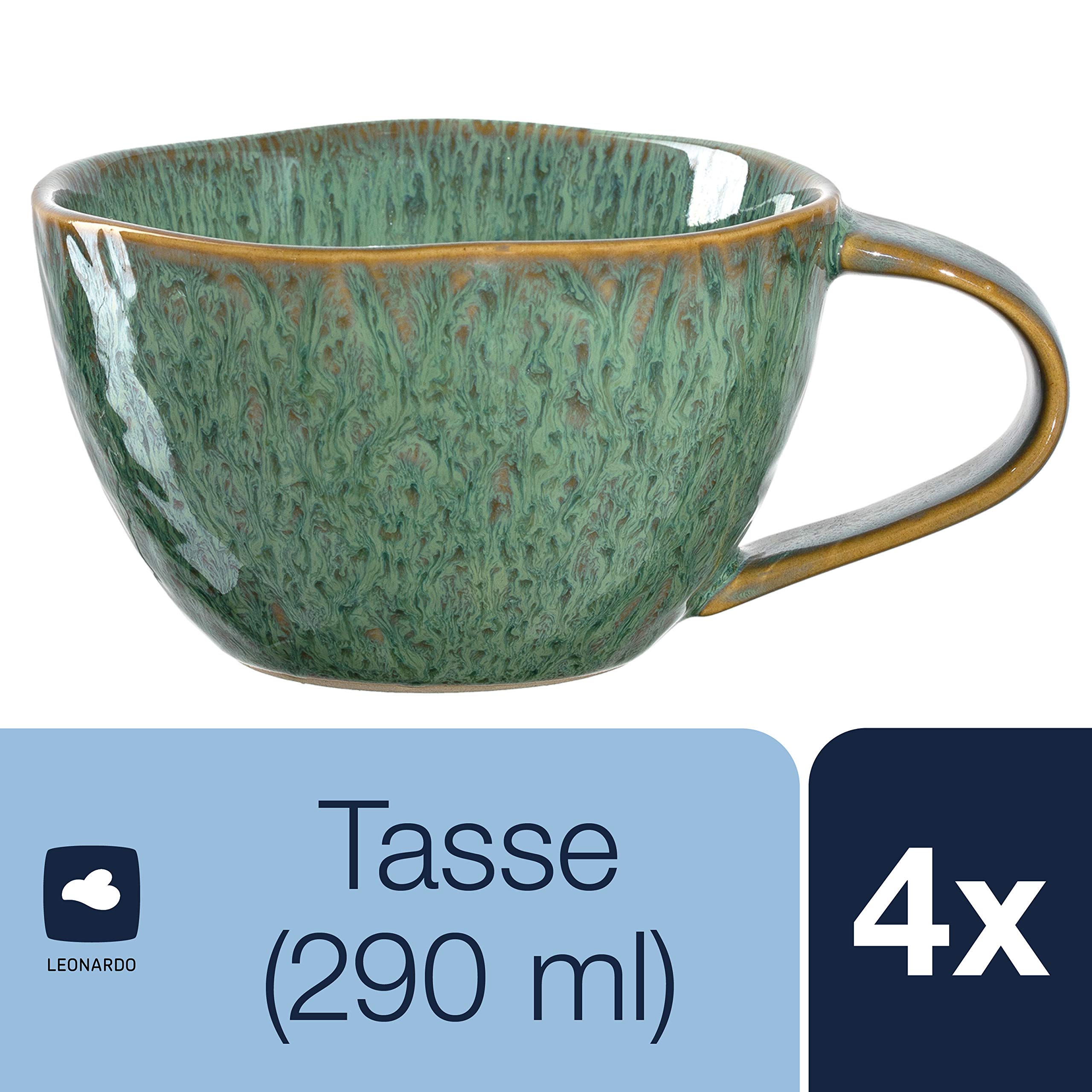 Polyvalent : les tasses en céramique peuvent servir différentes boissons. La tasse à thé est également parfaite comme cadeau pour vos amis et votre famille. Le vernis à effet est appliqué à la main et permet de créer des dégradés et des motifs personnalisés. Les tasses sont disponibles en différentes couleurs, elles sont également disponibles en kit. Caractéristiques : 1 grande tasse à café en céramique - Passe au micro-ondes, lave-vaisselle - Empilable - Hauteur : 10 cm - Diamètre : 8 cm - Contenance : 300 ml - Capacité utile : 230 ml - Poids : 265 g - Couleur : dégradé de couleur beige, gris, bleu - Fait à la main Que ce soit pour le café au petit déjeuner, le cappuccino entre les deux, le chocolat chaud après la promenade, pour le thé, le vin chaud ou le punch, cette tasse est toujours le partenaire idéal. Ces tasses en céramique de haute qualité par Leonardo s'intègrent parfaitement dans le style de maison de campagne rêveur et sensuel. Ainsi, chaque table à... La tasse Matera de Leonardo est parfaite pour toutes les occasions et vous offre une façon élégante de servir des boissons chaudes. Ils passent au micro-ondes et se nettoient facilement au lave-vaisselle, ce qui vous permet d'économiser du temps et des efforts. Les grandes tasses à café tiennent en toute sécurité sur la table, passent au micro-ondes et passent facilement au lave-vaisselle. Leonardo Matera Ensemble de Vaisselle Service Table/Service Céramique Empilable dans l'armoire pour économiser de Leonardo Matera Grande Tasse En Faïence, Contenance 300 Ml, Faite Main, Passe Au Micro-ondes, Passe Au Lave-vaisselle, 1 Pièce En Beige/anthracite/vert La surface est agréablement lisse et pourtant adhérente. Utilisation : les tasses à café en grès sont fabriquées en matériau robuste et durable. La tasse a une grande capacité de 300 ml et convient à tous les types de boissons. Détendez-vous simplement et profitez-en ! Découvrez le véritable plaisir avec la tasse de la série Matera ! Mixez et associez, les produits et les couleurs sont combinables. Grâce à l'émail effet appliqué à la main, des dégradés de couleurs uniques et des motifs individuels se forment Les tasses sont fabriquées en céramique de qualité supérieure, robuste, résistante et durable.