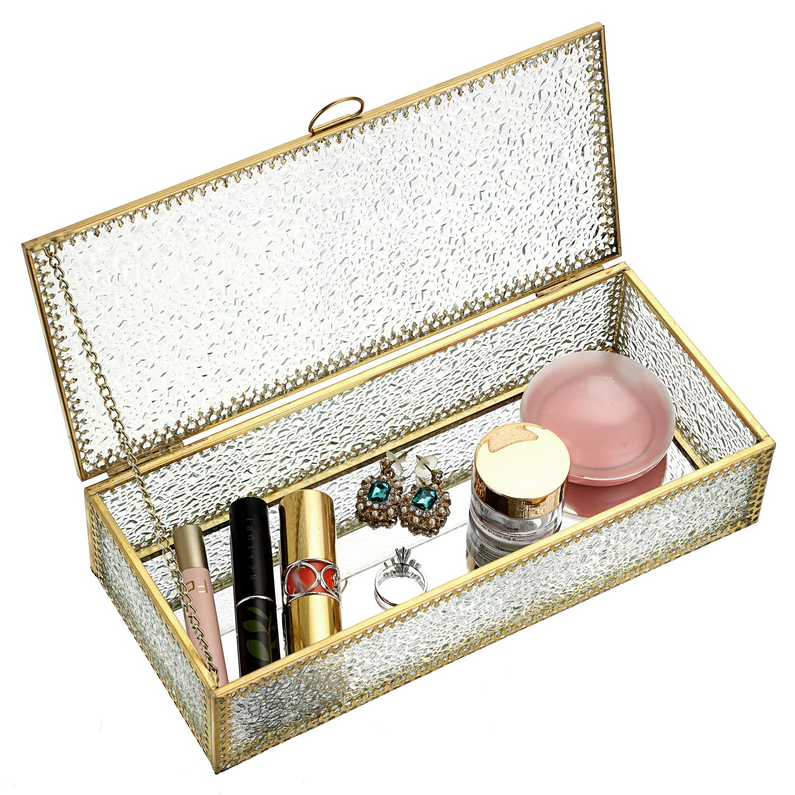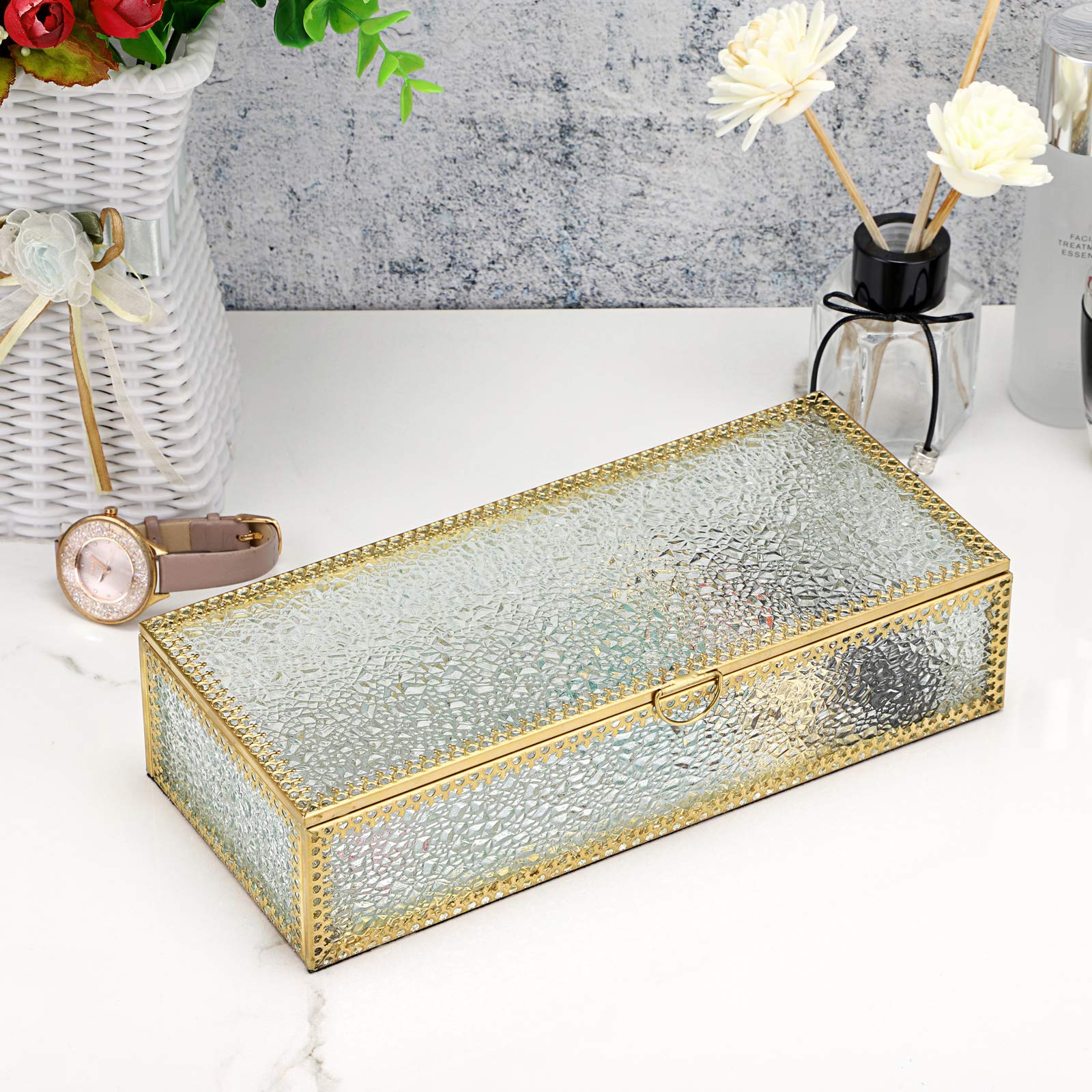 Nous sommes fiers de notre savoir-faire et nous nous engageons à vous offrir la meilleure expérience. Avec sa disposition spacieuse et ses dimensions compactes de 26,4 x 18,3 x 15 cm, cet organisateur de bijoux garantit que tout reste propre, bien rangé et à portée de main. Design en verre fabriqué à la main avec imprimé floral vintage : la boîte à bijoux Livresse est méticuleusement fabriquée à partir de verre de haute qualité avec un motif imprimé floral vintage qui ajoute une touche d'élégance. L'intérieur en velours doux amortit vos articles, tandis que la structure robuste maintient tout en sécurité. Nous sommes là pour vous aider et garantir votre entière satisfaction avec votre achat. Le design imprimé assure une esthétique unique d'inspiration vintage qui met en valeur n'importe quelle pièce dans laquelle elle est placée, tout en offrant un rangement pratique. BOÎTE À BIJOUX Vintage, Œuf en Porcelaine Japonaise De Type Satsuma... La boîte à bijoux Livresse est un mélange parfait d'élégance, d'artisanat et de praticité. Des boucles d'oreilles aux bagues et colliers, chaque pièce a son propre endroit désigné, ce qui facilite l'organisation et l'accès à votre collection. Son design vintage et son savoir-faire raffiné en font un cadeau idéal pour les femmes pour la fête des mères, Noël ou toute autre occasion spéciale. Boîte à bijoux - Vintage franse juwelendoos - Cristal Service client exceptionnel et qualité artisanale : chaque boîte à bijoux Livresse est soigneusement fabriquée à la main, ce qui peut entraîner de légères variations de couleur, ajoutant une touche unique à chaque pièce. Bois IKEA Boîte à Bijoux Vintage Faite à La Main En Verre à 3 Couches Porte Bijou Maison Du Monde Rangement parfait pour toutes les occasions : la boîte à bijoux Livresse est plus qu'une simple solution de rangement ; c'est une pièce de déclaration. Améliorez l'organisation de vos bijoux Contrairement à d'autres boîtes à bijoux qui peuvent utiliser du plastique ou des matériaux moins chers, cette boîte à bijoux dispose d'une structure en verre solide, offrant à la fois durabilité et aspect sophistiqué. Boîte ronde en carton avec couvercle jaune motif floral style vintage... Le motif floral vintage imprimé sur verre ajoute un charme intemporel et sophistiqué à n'importe quel espace.