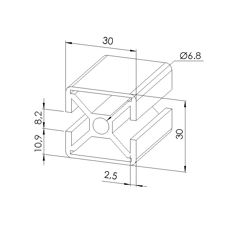 Profilé design / profilé en aluminium 30 x 30 mm léger type B Rainure 8/2N 180 ° Argent anodisé. Pré-tension : 0,2 mm + 0,1/-0,15 mm. Largeur de rainure : 8 mm - Profondeur de rainure : 9 mm. Notre profilé en aluminium 30x30 LR rainure 8 de type B a 2 rainures d'une largeur de 8 mm et d'une profondeur de 9 mm. Le noyau convient pour un filetage M8. Données du produit profilé aluminium 30x30 LR Type B rainure 8 dans la vue d'ensemble Profilé en aluminium design 30 x 30 L - 2 rainures dissimulées à 90 ° - Type B - Rainure 8 (légère) - Argent anodisé. Noyau adapté pour un filetage M8... Profilé En Aluminium Anodisé Profilé En Aluminium Noir 30 X 60 Cm - Type B - Rainure 8 (léger) - Profil En Aluminium 30 X 60 Mm - Profil Système De Montage - Longueur Standard 800 Mm Profilé 30x30 Aluminium Caractéristiques techniques : Profil 30 x 30 mm - Type B. Profilo in alluminio 20 x 20 tipo B scanalatura 6 Taglio 50 2000 mm Profili in a Caractéristiques mécaniques : Désignation : EN 572-3 | EN-AW 6063., Condition : EN 515 | T66., Rp0,2 : N/mm² | = 200., Rm : N/mm² | = 245., A : % | = 8., A 50 : % | = 6., Dureté : HB | = 80., Calcul de surface Surface : | mm² | 362,5., Circonférence du contour extérieur : | mm | 175,0., Centre de gravité : X | mm | 15,0., Y | mm | 15,0., Q : IX | mm4 | 29261,8., IY | mm4 | 3 6297,0., Couples de résistance : WX max | mm3 | 1950,8 WX min | mm3 | 1950,8., Wy max | mm3 | 2419,8., Wy min | mm3 | 2419,8., Nominal - Poids : kg | kg/m | env., ± 0,982., Profilé en aluminium design 30 x 30 L - 2 rainures dissimulées à 180 ° - Type B - Rainure 8 (légère) - Argent anodisé. Noyau adapté pour un filetage M8., Matériau : aluminium anodisé naturel., Caractéristiques : Rainure : 8., Modèle : léger. Profilé en aluminium 30 x 30 mm, 30 x 30 mm, 480 mm