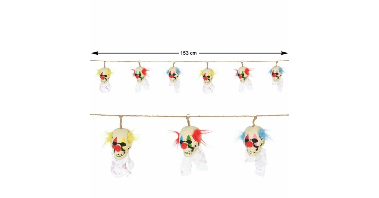 Guirlande à fanions XL Clown coloré 8 m à prix minis sur Description du produit Boland Bol72350 Guirlande plastifiée clown terrifiante, 30 cm x 6 m Excellente idée cadeau. P'TIT Clown re22585 - Guirlande Pompons métallisés Argent... Guirlande Fanion Clown Halloween 3 Mètres - Décoration Créez un cirque effrayant pour Halloween ! Cette guirlande à fanions mesure environ 6 m de longueur. Les fanions mesurent environ 30 cm de hauteur. Ils sont imprimés d'un clown et d'un ballon de baudruche rouge. Cette guirlande sera parfaite pour compléter votre décoration d'horreur le soir d'Halloween Avertissement De Sûreté Ne convient pas aux enfants de moins de 36 mois