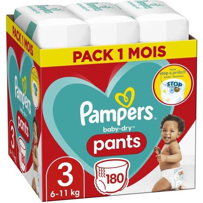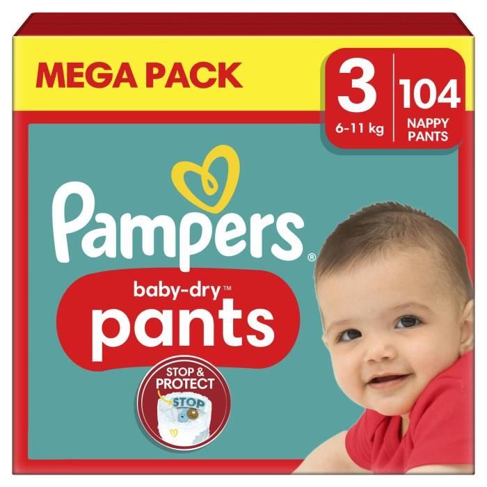 Description du produit Pendant qu’il dort, votre bébé peut bouger jusqu’à deux fois plus que vous, ce qui peut entrainer des fuites. Promo Couches Baby Dry Pampers chez E.Leclerc PAMPERS Baby-Dry pants couches-culottes taille 3 (6-11kg) 104 couches... La barrière antifuites aide à éviter les fuites au niveau des jambes Contenu du coffret Couches les couches pampers baby-dry offrent jusqu’à 12 heures de protection intégrale contre les fuites grâce à leur triple système de protection unique qui absorbe l’humidité instantanément et aide à éviter les fuites au niveau de la taille et des jambes. Lorsque la couche est mouillée, changez-la et jetez-la de manière hygiénique. Les attaches extensibles garantissent un bon ajustement pour une protection optimale contre les fuites les couches pampers baby-dry sont 100 % sûres: elles sont testées cliniquement, dermato logiquement et certifiées par le label indépendant oeko-tex. Le triple système de protection unique offre jusqu'à 12 heures de protection intégrale contre les fuites Découvrez notre sélection de couches Pampers sur place des couches. Offrez à votre bébé le confort et la protection. Choisissez parmi une gamme de tailles et de styles pour répondre aux besoins de votre enfant. Faites le meilleur choix pour son bien-être Couche Culotte Taille 5 Pampers Babydry Pants Couches Culottes Bébés Baby-Dry Pants 13-19kg T6 Pampers Taille 1 Testées cliniquement et dermato logiquement, ne contiennent aucun des allergènes listés par l'ue