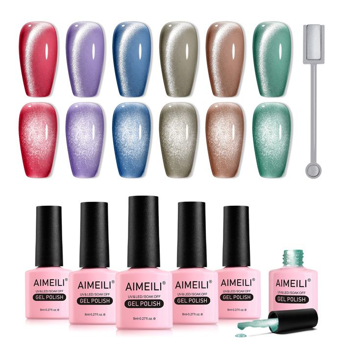 【Illuminez le bout de vos doigts】Il s'agit d'un nouveau vernis semi permanent œil de chat smoothie à la mode qui utilise le bâton magnétique inclus pour mettre en évidence différents effets d'œil de chat qui ont des effets différents sous différents angles et conditions d'éclairage. Nicedeco 6 Couleur Cat Eye Gel Nail Polish Set UV/LED Soak Off Magnetic Gel Polish Nail Art Manicure Pedicure pour Professionnel, Salon & Maison Utilisation 8ml kit 32 Vernis Cat Eyes Mobray Cat Eyes Vernis Ongles Semi Permanent Set, 6 Couleurs Vernis Magnetique Semi Permanent Cat Eye Vernis Gel U V/led Diy Salon Cadeaux Kit Et Noir Bond Vernis Gel Et 1 Pc Vernis Semi Permanent Cat Eyes Nicedeco Rubber Base 15L Vernis Sei Peranent Gel Sans HEA Naturel... Convient aux salons et à l'usage domestique. 【28 Jours Durabilité】Nicedeco vernis semi-permanent gels offre une application précise & rapide pour une manucure parfaite jusqu'à 28 jours. 【28 Jours Durabilité】Nicedeco vernis semi-permanent gels offre une application précise & rapide pour une manucure parfaite jusqu'à 28 jours. Pas d'ingrédients agressifs ou d'adhésifs qui endommagent les ongles. Ne vous attendez pas à des éclats, des taches, des entailles ou des bosses. Pas d'ingrédients agressifs ou d'adhésifs qui endommagent les ongles.