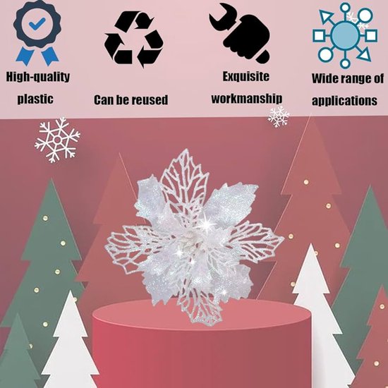 Spécifications : Nom du produit : fleur de Noël artificielle. Mini boules de Noël scintillantes sur fil argenté Fleurs de Noël artificielles scintillantes avec clips Ornement de fleur de sapin de Noël Décor adapté à de nombreuses occasions Caractéristiques : design... Avec les clips, vous pouvez fixer les fleurs artificielles sur le sapin de Noël pour rendre le sapin de Noël plus attrayant. Cette fleur de Noël est disponible en 7 couleurs : rouge, argent, bleu, rose, violet, rose. Couleur : or, argent, rouge, violet, rose, bleu., Poids : 4 g. 【Taille】 12 fleurs décoratives de Noël, 15 cm de diamètre. Chaque fleur de Noël est recouverte de beaucoup de poudre de paillettes, ce qui peut rendre votre sapin de Noël plus étincelant et charmant Wenn Sie Fragen haben, bieten wir einen 24-Stunden-Online-Kundendienst, um alle Ihre Probleme so schnell wie möglich zu lösen! Chaque fleur est équipée de clips. Lot de 12 fleurs pour sapin pailleté : le paquet comprend 12 fleurs de sapin de Noël bleu, préparez votre arbre pour des fleurs scintillantes.Taille parfaite pour décoration de Noël : le diamètre des fleurs pailletées du sapin de Noël est d'environ 14 cm et le lot est livré avec 15 clips et 15 tige de la fleur de 15 cm. Insérez simplement le clip dans le trou de la tige et fixez-le... 12 Pcs Fleur De Noël, Ornements Sapin De Noel Fleurs Artificielle, Fleurs D'Arbre De Noël Large application : les fleurs de Noël artificielles peuvent être utilisées pour la décoration des arbres de Noël, des mariages, des fêtes d'anniversaire, des décorations du Nouvel An ou d'autres célébrations et vous donnent une atmosphère festive.