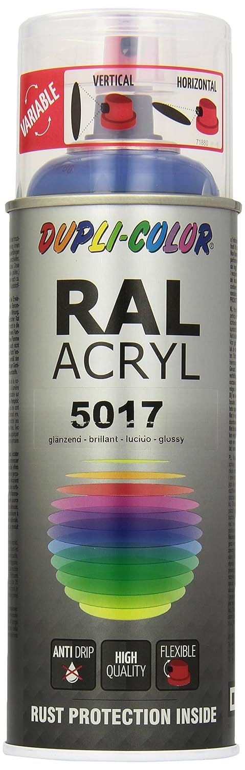 Très bon pouvoir couvrant grâce à la forte teneur en pigments de la couleur TRISTARcolor RAL 5017 Verkehrsblau mat satiné Bombe de peinture acrylique 2K aérosol peinture à vaporiser peinture à pulvériser 400 ml séchage rapide : : BricolageNous nous efforçons de protéger votre sécurité et votre vie privée. Notre système de paiement sécurisé chiffre vos données lors de la transmission. Nous ne partageons pas les détails de votre carte de crédit... (La peinture est extrêmement couvrante et ne doit pas être appliquée en couche trop épaisse !, ) Agiter l'aérosol pendant au moins 2 minutes avant utilisation. RAL Aérosol RAL 5017 Verkehrsblau 400ml Qualité professionnelle - Made in Germany En effet : la qualité a un coût ! Découvrez la couleur RAL 5017 : Bombe de peinture RAL 5017 BLEU SIGNALISATION et choisissez votre bombe de peinture RAL de la qualité que vous souhaitez : à vernir, brillant direct 1K ou 2K, spécial aluminium, inox, carrelage, vous trouverez ici la bombe de peinture qui correspond à vos besoins. (Le temps de séchage dépend fortement de la température de l'objet et de la température extérieure., ) (La bille de mélange doit être audible). Bombe de peinture Bleu Signalisation RAL 5017 - Brillant, Satin ou Mat Pulvériser la peinture RAL sur la pièce et laisser s'aérer pendant 60 minutes. Nous proposons tout le nécessaire pour un vernissage professionnel : de la peinture à base d’eau et des systèmes highsolid conformes COV, à la peinture de base conventionnelle et au système acrylique 2K. Buse de tête de pulvérisation réglable Ordonnance COVEn achetant, vous acceptez la réglementation sur les COV (2004/42/EC ou 199/13/EC) en vigueur depuis le 01., 01., 2007., Idéal pour pulvériser de la peinture en bombe sur des pièces de carrosserie, des pièces en plastique ou pour l’utilisation dans le domaine des loisirs, du bricolage et du modélisme. Précision extrême des teintes selon RAL Classic