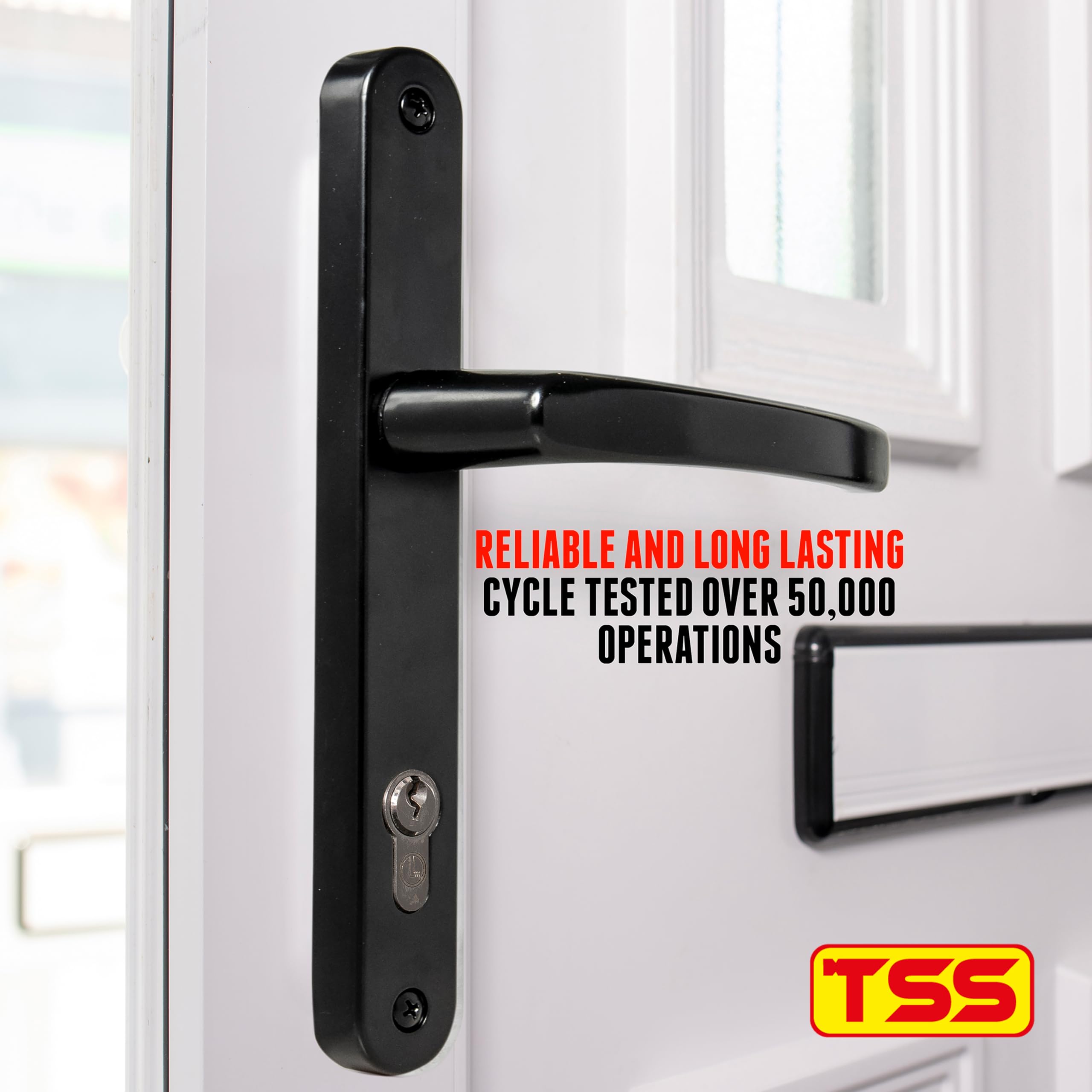 Les poignées de porte de rechange UPVC en laiton poli TSS sont testées au brouillard salin pendant plus de 240 heures. Veuillez utiliser le guide de mesure dans les images pour vous assurer de commander la bonne taille de poignée – Mesures importantes à noter – 68 mm PZ (centres – du centre du trou de serrure au centre du ressort de la poignée de porte. Serrures de levier de porte de sécurité pour enfants, serrure de levier... Convient aux serrures Fullex 68 mm PZ , Qualité testée. Poignée en PVC sans main en laiton poli. Les fixations et 1 broche solide de 8 mm x 125 mm Toutes les poignées de porte multipoint TSS sont testées sur plus de 50 000 opérations pour garantir qu'elles passent l'épreuve du temps et de l'utilisation. TSS Ensemble de poignées de porte en PVC noir avec levier Les poignées amovibles à levier de haute qualité ont un levier sur la poignée interne et un coussinet à l'extérieur. Poignée universelle permettant aux poignées de pivoter entièrement et convient pour les portes gauchers ou droitiers. Application : les poignées de porte TSS de rechange UPVC peuvent être montées sur différents types de portes, y compris : UPVC, PVC, PVC, bois, bois, bifold, poignées de porte française, poignées de porte extérieure, poignées de porte de terrasse, serrures de porte à double vitrage, poignées de porte de véranda et portes avant ou arrière , Finition de qualité. Poignée De Porte Extérieure TSS Paire De Poignées De Porte En UPVC En Laiton Poli Avec Levier Poignée Porte Intérieure Sur Plaque TSS Ensemble de poignées de porte en UPVC pour serrures Fullex – Levier/levier – 68 mm PZ (centres) – 215 mm de vis à vis – Plaque arrière 245 mm x 34 mm – UPVC... Le test au brouillard salin garantit une finition de haute qualité et prouve qu'ils sont résistants et ne ternissent pas avec le temps. Poignées de porte en PVC à ressort permettant au levier ou au coussinet de revenir à sa position d'origine.