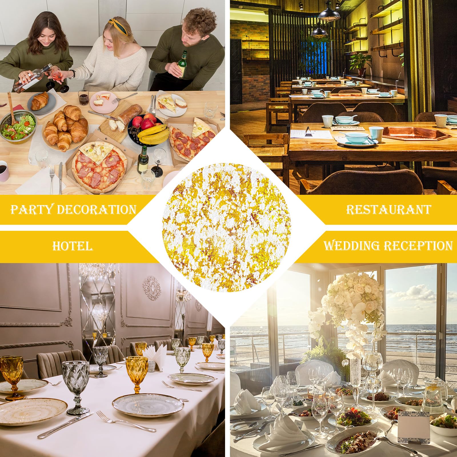 Assiette Or Napperons Jetables Or 12 Pièces Table Ronde En Feuille D'or En Maille Dessous D Assiette Doré Spécifications du produit:Couleur : OrMatériel: PolyesterTaille du produit : 330 mm/13 poucesListe de colisage : 12 Pièces table estampés à chaud combinant fonctionnalité et beauté pour en faire un choix approprié pour les petites réunions de fête. Assiettes glacées 16 pièces, fournitures de dîner ... – Grandado Description du produit Sets de Table Jetables 12 Sets de table ronds press s en maille fine en feuille de paillettes dor es, chacun coup une taille ronde de 13 pouces, peuvent tre utilis s pour placer des assiettes et plus encore, la fonctionnalit rencontre le glamour, ce qui les rend parfaits pour les petites r unions. Un choix appropri pour les f tes Design Exquis en Feuille D'or Ces sets de... 【Convient pour les scènes】Ces sets de table répétés sont parfaits pour les mariages, les anniversaires, les fêtes d'anniversaire, Thanksgiving, Noël, les événements et d'autres occasions, créant une atmosphère festive et un charme pour la maison, la cuisine, les restaurants, les hôtels, etc. Ensemble de napperons jetables en or, 12 pièces, 13 pouces, décoration Décoration polyvalente : en plus d'être principalement utilisés pour les tables à manger, ces tapis ronds en feuille d'or sont également parfaits pour la décoration de chambre, comme centre de table décoratif, ou pour créer des présentoirs DIY pour embellir les murs, les tables et les fenêtres. Respectueux de l'environnement et réutilisables : les sets de table ronds dorés sont faciles à nettoyer, ne se décolorent pas dans l'eau et sont assez résistants aux déchirures pour garantir qu'ils peuvent être utilisés plusieurs fois. Il peut facilement améliorer le charme de votre table et améliorer la qualité de votre salle à manger. Telooco Napperons Jetables Or 12 Pièces Table Ronde en Feuille d Contenu de l'emballage : 12 sets de table ronds en maille fine pressée à paillettes dorées, chacun coupé à une taille ronde de 33 cm, peut être utilisé pour placer des assiettes, etc.