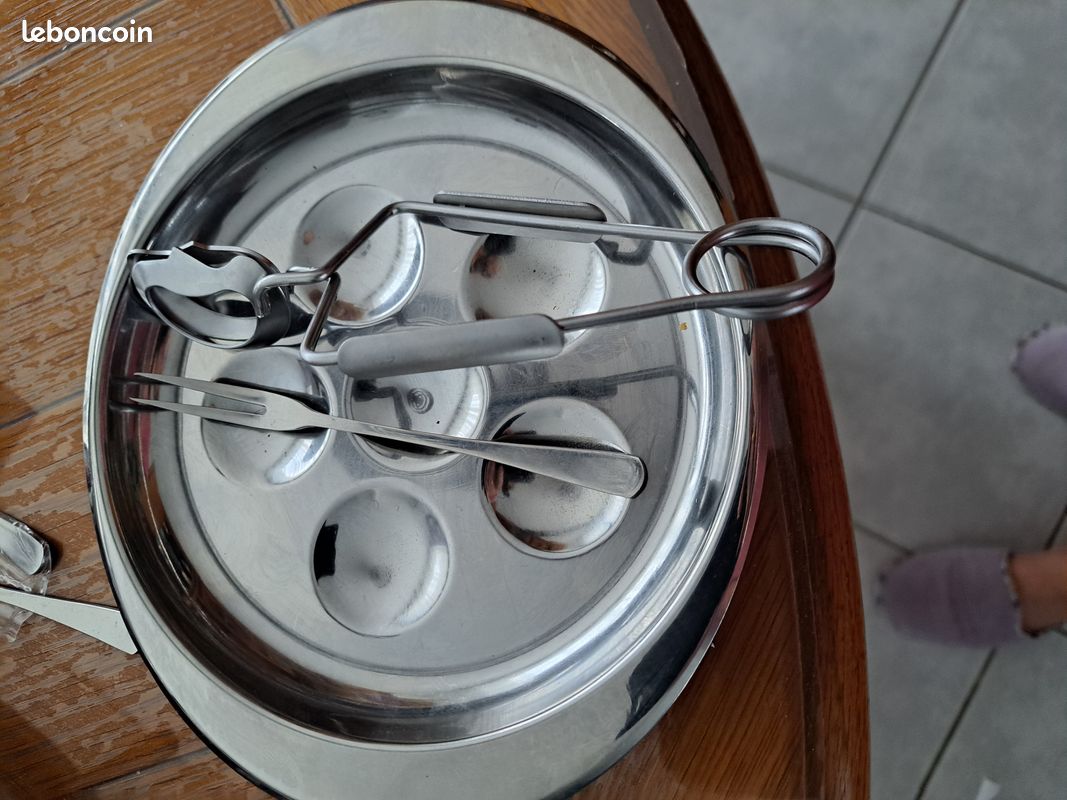 Description détaillée ; Dimensions. Longueur : 20 cm / Largeur : 20 cm / Hauteur : 4 cm ; Matière. INOX ; Couleur. Gris ; Poids. 0.81 kg... Inox, 6 assiettes de 19 cm, 6 fourchettes, 6 pinces Retrouvez les avis des consommateurs et le prix de Set 4 assiettes à escargots 6 trous en inox Mathon - La boutique de c'est un incontournable pour les fins gourmets. Il se compose de 6 assiettes de 19 cm de diamètre pour y déposer 12 escargots. Il y a également 6 pinces et 6... Coquille Escargot Vide Plat à Escargot Inox 12 Trous Inox 18/10 Assiette Escargot 6 Trous 6 Löcher Schnecken schale Edelstahl Schnecken platte Schnecken pfanne Escargot P