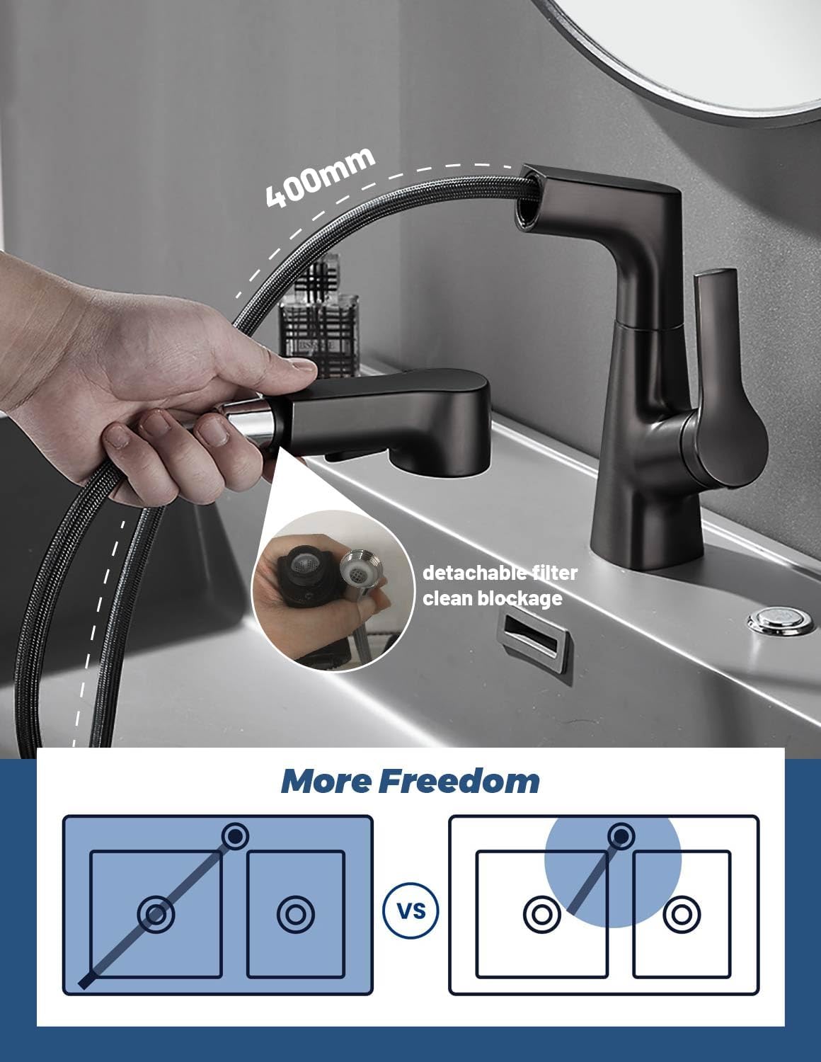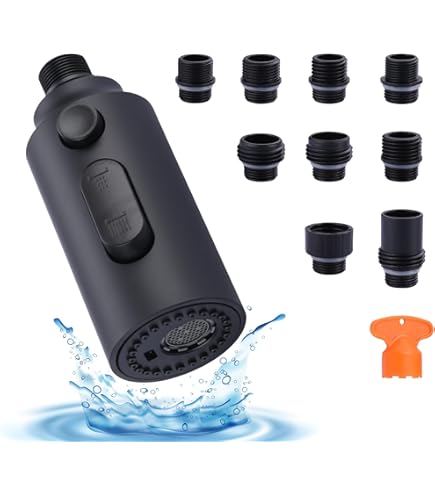 Mode de pulvérisation à 2 fonctions : Mode de pulvérisation : grande zone de nettoyage, adaptée aux grandes pièces telles que les pots Mode 2., Stream : Il y a un barboteur qui peut rendre l'eau douce et tirer le spray la tête convient au lavage régulier, comme la vaisselle, les bols, etc. Tête de pulvérisation extractible pour robinet de cuisine, tête de rechange pour robinet d'évier de cuisine, tête de pulvérisation extractible pour connecteur G1/2 VOANZO Tête de pulvérisation extractible à 2 fonctions pour évier de cuisine - Tête de pulvérisation de rechange extractible - Noir mat : : BricolageConçu uniquement pour un type standard de tuyau extractible, s'adapte à la plupart des applications, mais ne convient pas à certains modèles de marques spécifiques, veuillez vérifier la taille et le type de filetage avant de... Le type de pulvérisateur haute pression peut facilement rincer les débris alimentaires et la vaisselle. Contenu de l'emballage : remplacement de la tête de robinet de cuisine (sans tuyau). Facile à installer : Dévissez simplement votre ancienne pomme de douche et remplacez-la par votre nouvelle. Spécifications: Matériel: Plastique ABS Couleur : noir mat. En plastique de qualité technique (PC/ABS) construit et finition chromée de pointe, assurant qualité et longévité, résiste aux rayures Facile à utiliser : Basculez entre 2 modes en appuyant sur les boutons d'un doigt. Conçu uniquement pour un type standard de tuyau extractible, s'adapte à la plupart des applications, mais ne convient pas à certains modèles de marques spécifiques, veuillez vérifier la taille et le type de filetage avant de passer commande Conçu uniquement pour un type standard de tuyau extractible, s adapte à la plupart des applications, mais ne convient pas à certains modèles de marques spécifiques, veuillez vérifier la taille et le type de filetage avant de passer commande - 2 fonctions : mode et mode pulvérisation Tête De Robinet D'évier De Cuisine Noire Mate 2 Fonctions Tête De Pulvérisation Extractible Pour Robinet De Salle De Bain Et Cuisine, Pièce De Rechange G1/2 (modèle 4, Noir Mat Il est très facile d'installer cette tête de pulvérisation extractible, il suffit de dévisser votre ancien pommeau de douche et de le remplacer par votre nouveau pour transformer votre cuisine