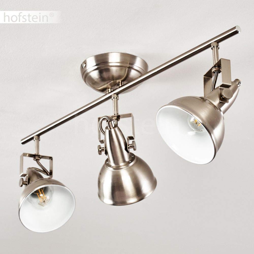 hofsteinH3029602 Cette lampe est appropriée pour les ampoules des classes énergétiques A++ à E sur une échelle de A++ (très efficient) à E (moins efficient) Douille / Ampoules : 2 x E14 max. Douille / Ampoules : 2 x E14 max. 40 Watt (ampoules non incluses) | Appropriée pour : ampoules LED, ampoules Eco-halogènes, ampoules à économie d'énergie. Matériau de la lampe : Métal | Couleur de la lampe 40 Watt (ampoules non incluses) | Appropriée pour : ampoules LED, ampoules Eco-halogènes, ampoules à économie d'énergie. Plafonnier Salle De Bain Applique Murale Tina En Métal Nickel Mat - Spot Pour Couloir - Salon Lustre Chambre Adulte Particularité : Le spot pivote et s'oriente Spot de plafond pivotant] Le spot de plafond à 2 lampes est orientable à 330°, car le plafonnier vintage avec spot peut être tourné individuellement... Plafonnier Tina en métal blanc, 3 spots de plafond pivotants Longueur de la lampe : 36,5 cm | Largeur de la lampe : 11,5 cm | Hauteur de la lampe : 26 cm | Diamètre de la suspension : 12,5 cm | Matériau de la lampe : Métal Couleur de la lampe : Nickel mat Longueur de la lampe : 36,5 cm Largeur de la lampe : 11,5 cm Hauteur de la lampe : 26 cm Diamètre de la suspension : 12,5 cm Classe de protection : I Indice de protection : IP 20 Particularité : Le spot pivote et s'oriente