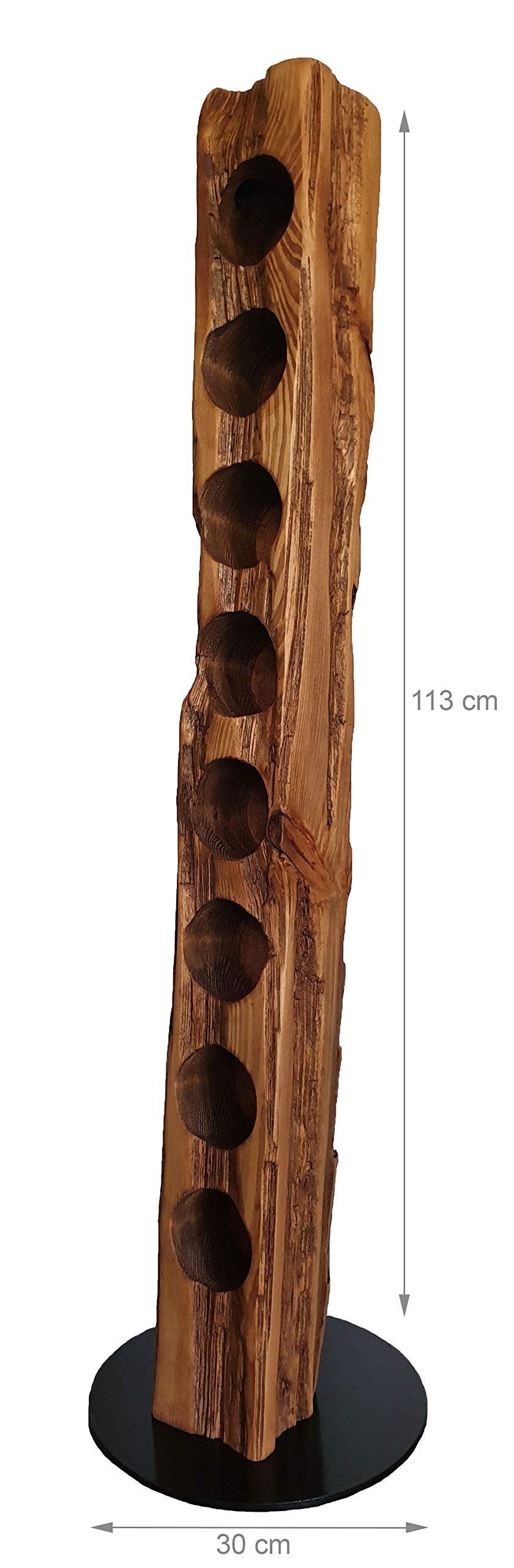 Ce porte-vin a une hauteur de 113 cm et un diamètre de 30 cm. Ce casier à vin en bois massif, fabriqué à la main en Allemagne, s'intègre parfaitement dans n'importe quel intérieur et est unique dans sa structure. Idéal comme cadeau pour tout amateur de vin ou pour la présentation parfaite de votre bon vin - tout simplement quelque chose de spécial Capacité : jusqu'à 8 bouteilles de vin. Les différentes cicatrices, fissures et encoches confèrent à chaque casier à vin sa touche individuelle avec son propre charme et son caractère ; seule la structure de base de la face avant est la même. Wood & Wishes - Casier à Vin Rustique, Porte-Bouteille En Bois Massif Casier Porte Bouteilles Bois et Métal Vintage décoration cuisine Ce support à vin en bois massif fabriqué à la main en Allemagne sur un style ancien qui s'intègre parfaitement dans n'importe quel intérieur, est unique en raison de sa structure qui lui est conférée. Idéal comme cadeau pour tous les amateurs de vin ou pour la présentation parfaite de votre bon vin, tout simplement quelque chose de spécial