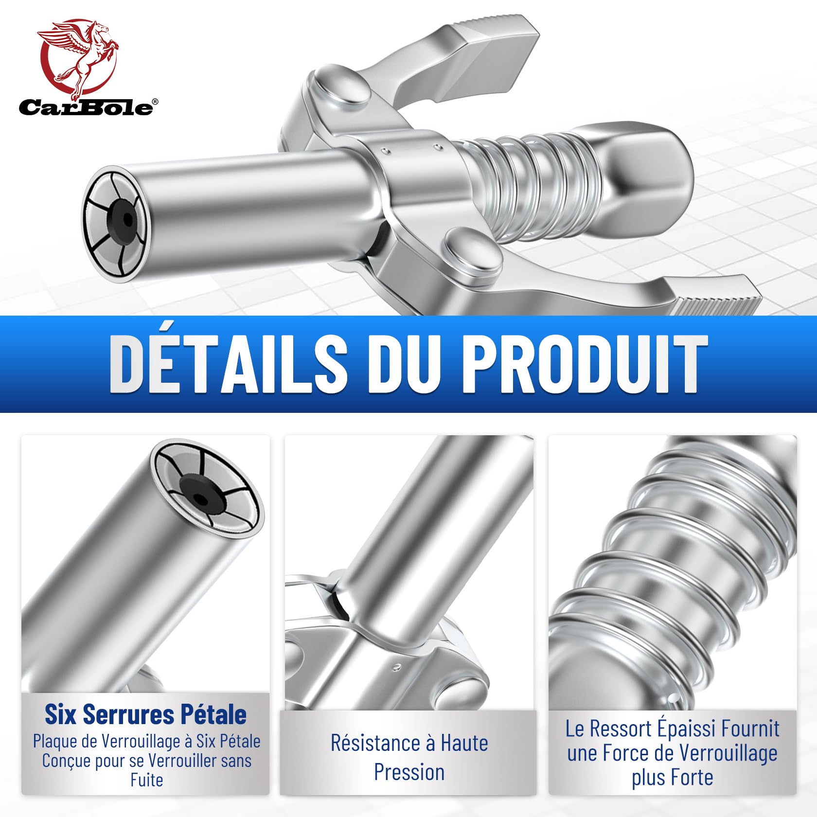 Liste des packages : 5 coupleurs de pistolet à graisse Raccord de Pistolet à Graisse, Coupleur pour Pompe à 1/8 NPTF Utiliser avec des pistolets à graisse à air ou à main pour les raccords de graisse difficile à accès où un angle de fixation accru est requis pour le coupleur de remplacement pour l'article n ° 63517 à flux continu à flux de graisse à air à air Coupleur De Pistolet à Graisse, Buse De Verrouillage Rapide NPTI/8 10000psi Pour Verrouillage Facile, Adaptateur De Pistolet à Graisse électrique à Air Manuel 【Service après-vente de haute qualité】 Votre satisfaction est notre plus grande préoccupation, nous nous engageons à offrir à nos clients une expérience d'achat agréable et un service après-vente satisfaisant. Le seul coupleur de graisse reconstructible au monde Nous incluons un kit de joint de rechange gratuit avec chaque coupleur de graisse LockNLube. Si le joint ou les mâchoires s'usent, remplacez-les facilement gratuitement. Ne perdez pas de temps et d'argent en jetant et en remplaçant les anciens coupleurs de graisse. Celui-ci dure toute une vie 【Matériau du produit】Le coupleur de pistolet à graisse est fabriqué en alliage de haute qualité, solide et durable, haute dureté, résistant à l'usure et durable, longue durée de vie 【Convient pour】 Coupleur de pistolet à graisse standard adapté au filetage 1/8, installation simple, adapté à l'entretien de l'équipement, composants de l'équipement portant la lubrification 【Conception autobloquante】 Cette tête de pistolet à beurre adopte quatre pièces à griffes, une bouche plate pour fermer le trou d'huile, avec une fonction autobloquante, améliore l'étanchéité de la machine, pas facile à tomber Optimisez vos tâches de graissage avec le pistolet à graisse manuel VEVOR.
