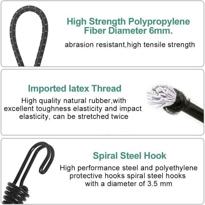 Ces tendeurs robustes sont parfaits pour une utilisation en extérieur et en intérieur. Tailles assorties : le colis comprend 16 tendeurs de différentes tailles, y compris 5,1 x 30,5 cm, 10,2 x 61 cm, 10,2 x 76,2 cm, 10,2 x 91,4 cm et 5,1 x 106,7 cm, offrant de nombreuses options de longueur pour diverses tâches Qualité marine : processus de revêtement en plastique pour les crochets métalliques, protège les crochets métalliques enduits contre la corrosion, et offre une prise en main confortable et contrôlée Tendeur élastique de 16 cm de long avec crochet en S Tendeurs robustes : fabriqués en caoutchouc 100 % naturel de haute qualité avec une résistance à la rupture allant jusqu'à 81,6 kg, 8 mm de diamètre, ces cordons sont conçus pour résister à de lourdes charges et une utilisation en extérieur Tenders élastique FORTEM Assortiment De Tendeurs, Lot De 32 Tendeurs élastiques Comprenant 25,4 Cm, 45,7 Cm, 61 Cm, 81,3 Cm, 101,6 Cm Et Attaches à Boules De 20,3 Cm, Crochets Métalliques Recouverts De Plastique Tendeur élastique Sans Fil Ils sont faits de matériaux de haute qualité et ont une forte résistance à la traction jusqu'à 81,6 kg. Les crochets aux extrémités facilitent la fixation et le détachement des cordons, et les couleurs vives les rendent faciles à repérer et à identifier. Avec une variété de tailles et de longueurs au choix, ces cordons sont polyvalents et peuvent être utilisés pour une large gamme d'applications, telles que la fixation d'articles sur une galerie de toit, une remorque ou un bateau, ou comme clôture temporaire. 30 Pièces Tendeurs Elastique Avec Crochets, 16cm Elastiques Sandows, Sandow Elastique Pour Fixation Bache, Camping, Tente, Pavilion · Remboursement pendant 3 ans...