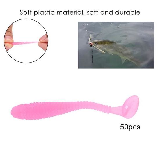 Articles pour la pêche en promotion TMISHION Appâts pour leurres 10 pièces appâts de pêche au ver élastique... WALFRONT 50pcs 5cm En Plastique Souple Leurres De Pêche T-Tail Grub Ver App Ts Poisson Attaquer Accessoire App Ts App Ts De P Che La conception en forme de ver de terre douce et réaliste de super simulation peut attirer l'attention du poisson. - Utilisation de formule secrète, pour que le corps conserve une douceur unique