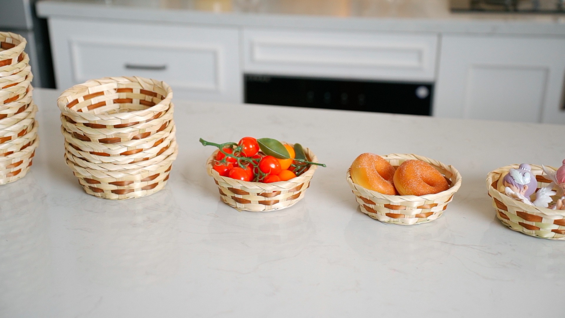 Chaque panier mesure environ 16,5 cm de diamètre, ce qui le rend idéal pour contenir des fruits, des légumes, du pain, des pâtisseries, des muffins, etc. Les tendances actuelles pour les paniers à pain - Le Blog Caractéristiques: Matériau: bambou 3 unités de tailles différentes Choix de cadeau parfait : le lot de paniers cadeaux GNIEMCKIN est une excellente option cadeau. Ils peuvent également être utilisés pour présenter des fruits, organiser de petits articles, ou même comme pièces décoratives dans votre maison. Matériau en bambou : ces paniers cadeaux ronds sont méticuleusement fabriqués à partir de bambou de haute qualité, assurant des options de stockage des aliments sûres et plus saines. 【Durable et durable】: fabriqué à partir de bambou de haute qualité, ces paniers en bambou sont non seulement durables mais également respectueux de l'environnement. Design complexe fait main : chaque panier est fabriqué à la main de manière unique, présentant un charmant design tissé qui permet une bonne circulation de l'air. Ils sont faciles à nettoyer et à entretenir avec un simple essuyage. Leur esthétique naturelle et rustique en fait un ajout polyvalent à n'importe quel espace. Panier En Bambou Sintuff Lot De 60 Paniers Cadeaux Ronds En Bambou Tissé De 16,5 Cm - Petit Panier à Fruits Et à Pain - Paniers De Service Vides Pour Collation, Pique-nique, Cuisine, Restaurant, Maison Panier Pain Style rattan élégant:Ce panier de rangement pour cuisine allie esthétique et fonctionnalité, parfait pour la cuisine moderne. Matériau : plastique PP de haute... Panier à canne en gros_25 - Solutions de rangement élégantes