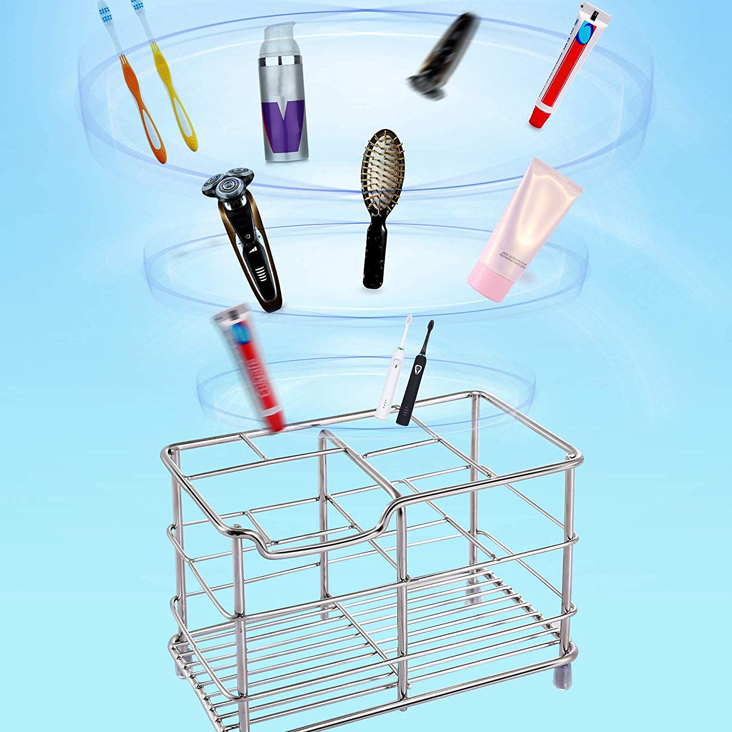 Porte-brosse à dents en acier inoxydable Conception à Double Usage Redonne de L'ordre à Votre Lavabo : vous pouvez mettre le porte-brosse à dents sur le mur, ou le poser sur un lavabo ou à l’intérieur d’un armoire selon vos besoins. Dites Adieu au Basculement et à La Chute : grâce au rebord inférieur surélevé et à la taille appropriée du récipient (3,5 cm de diametre), le porte-brosse à dents peut maintenir en place les brosses à dents électriques, les dentifrices ou les rasoirs manuels. Lot de 2 Support Brosse a Dent Electrique, Porte Brosse à Dents... Grande capacité : ce porte-brosse à dents comprend 6 emplacements pour brosse à dents (adaptés pour brosse à dents électrique ou normale), rasoir, dentifrice... Toothbrush Holder Porte-brosse à Dents Mural En Acier Inoxydable, Porte-brosse Plaque Murale Adhesive YYBO Porte-Brosse à Dents Mural Porte Brosse à Dents Électrique Support