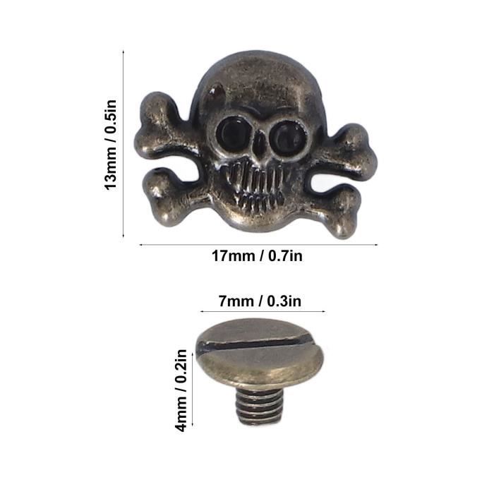 UTO Femme Une Sére de Grand Sac Cabas Sac à Man Porte-Monnae Motf tête de Mort Rvets PU Bouton en 2 parties tête de mort sans couture à clipser en taille 15 mm métal vieilli Four Vendu par 1 – finition argent vieilli. Largeur : 7 mm. Hauteur : 11 mm. Trous de fixation, diamètre : 2,5 mm. Jeux de pose : 8100 et 8056 pour pose des rivets Bon pour la décoration de collier, sacs de bricolage, chaussures, vestes, etc, pour montrer votre goût particulier et la personnalité. Lot de 150 rivets tête de mort style punk, à faire soi-même, pour décoration de chaussures et... Rivets Pour Tissus HURRISE Rivets De Tête De Mort En Métal 50 Ensembles De Rivets De Crâne Pose De Rivets Pour Cuir Les boutons crânes sont parfaits pour la fabrication d'objets d'art, d'artisanat et de vêtements tels que chaussures, ceintures, sacs à main, vestes, bracelets en cuir, etc. Il affiche pleinement votre goût et votre personnalité.