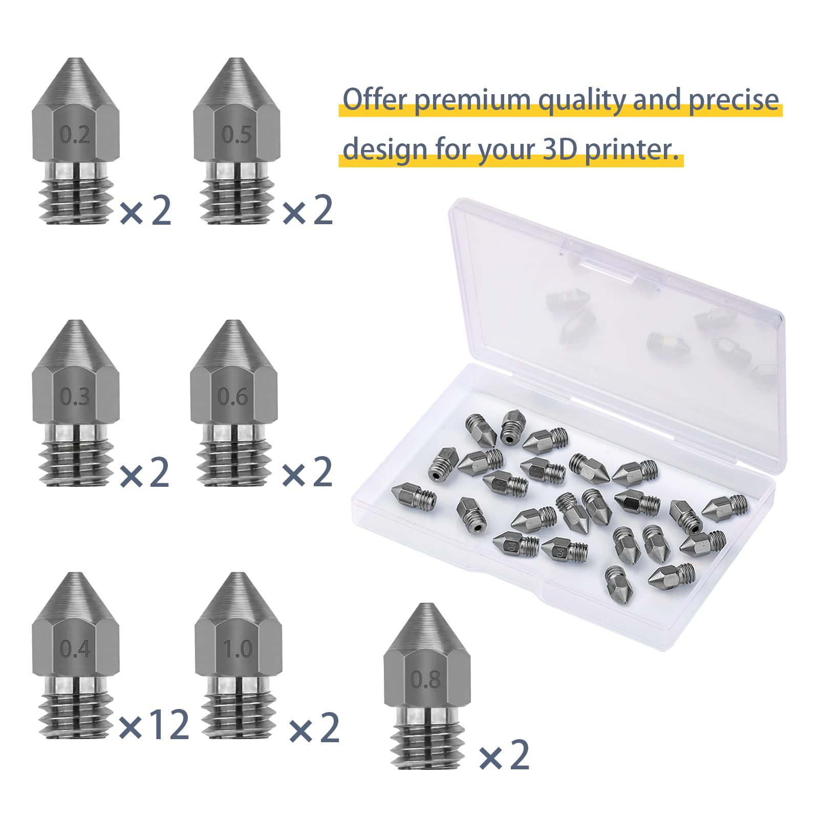 Sa surface de contact est plate et les articulations sont serrées, ce qui résout le problème de fuite de matériau consommable, ce qui peut empêcher efficacement l'imprimante de fuir. Qqmora buse d'imprimante 3D Buses d'imprimante 3D, filetage M6... Et la paroi intérieure de la buse de l'imprimante est également très lisse, le coefficient de viscosité est petit et la soie est plus lisse. Parfaitement circulaire et taille de filetage Les trous d'extrusion sont centrés et concentriques, l'alésage est lisse et les filetages sont propres, se connectent avec M6 sur le filetage, facile à installer, il correspond exactement aux pièces d'usine. Buse Imprimante 3d Lot De 20 Buses Pour Imprimante 3D 0,4 Mm, Avec Boîte De Imprimante 3d Ender 3 Accessoire Imprimante 3d Buses En Acier Inoxydable Accessoires D'imprimante 3D Buses D Ender 3 La extrudeuse de buses en laiton peut accueillir des filaments de 1,75 mm. Téléchargez ce vecteur Premium sur Buse d'imprimante 3D à partir de l'ensemble d'icônes bleues et explorez des millions de vecteurs professionnels sur Freepik. 【ACCESSOIRES D'IMPRESSION 3D PROFESSIONNELS】: Les buses d'imprimante 3D sont des accessoires d'impression 3D professionnels. Taille précise: La buse d'imprimante 3D grâce à des tests à long terme pour résoudre le problème du colmatage et des matériaux manquants dans la plus grande mesure, une faible conductivité thermique, une résistance à la corrosion, une résistance élevée à l'abrasion. Creality Lot De 10 Buses En Laiton 0,4 Mm Pour Ender 5 S1, Ender 3 V3... 【BONNE PERFORMANCE】: La surface de la buse en laiton de 0,4 mm est lisse, brillante et sans bavures, et le lettrage clair vous permet de l'identifier facilement. 【BUSE D'IMPRIMANTE DE 0,4 MM】: Le diamètre d'extrusion de la buse d'impression est de 0,4 mm. Il peut être utilisé pour remplacer des buses d'imprimante anciennes ou endommagées. design ergonomique, facile à utiliser,à la fois droites et courbes de précision disponibles, idéales pour l'entretien des buses d'imprimante 3D. 【MATÉRIAUX DE HAUTE QUALITÉ】: La extrudeuse buses d'imprimante 3D est en laiton de haute qualité, durable et résistant aux températures élevées.