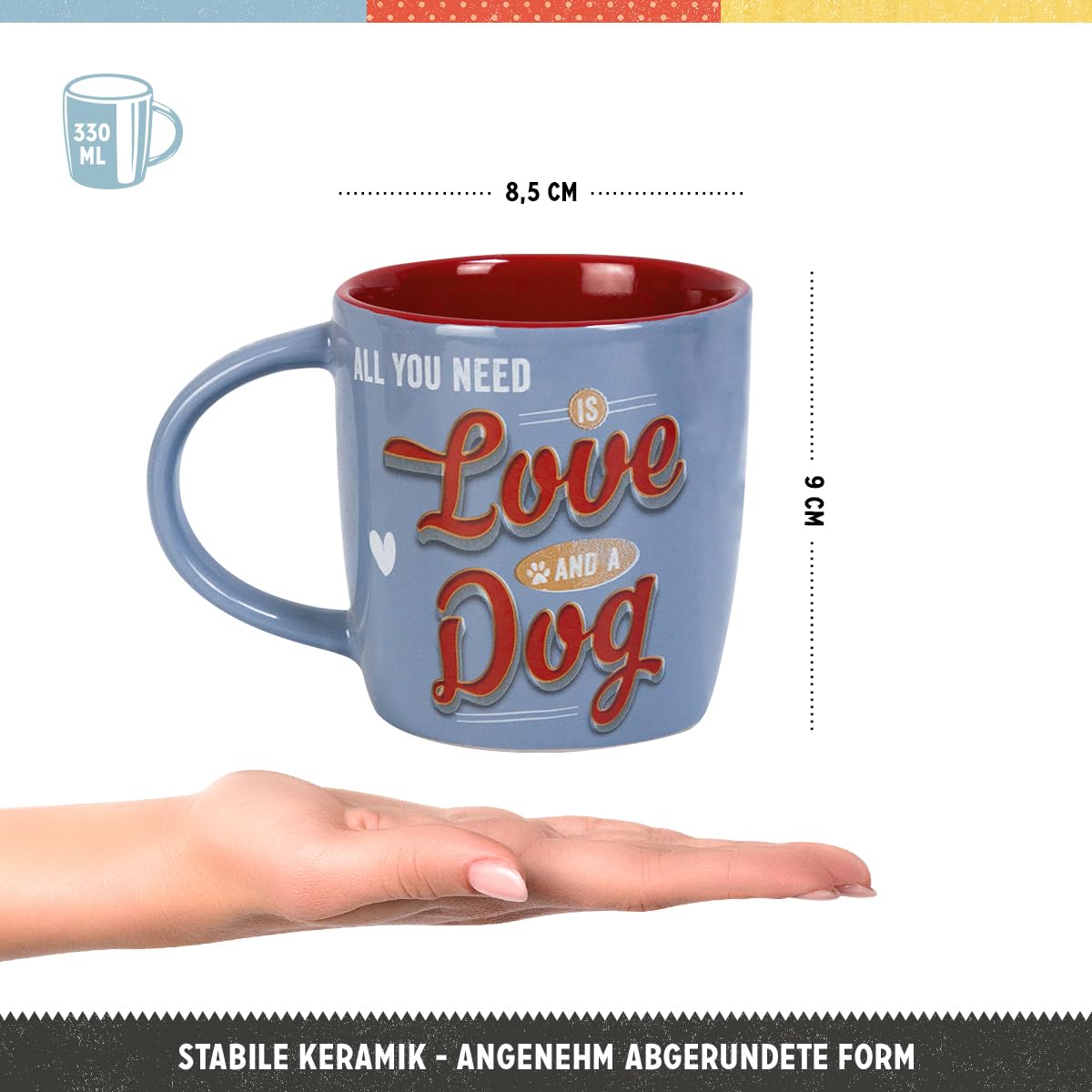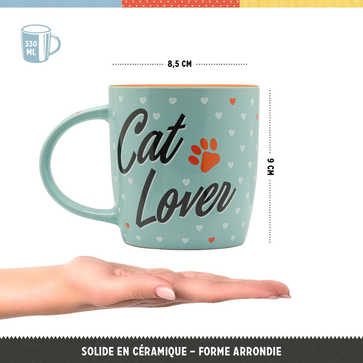 WE LOVE RETRO : tasse à café au design nostalgique, impression de haute qualité à l'intérieur et à l'extérieur Sa forme est agréable, légèrement arrondie, et elle est tout simplement agréable à tenir dans la main. Tasse Design Nostalgic-Art Tasse à Café Rétro, Cat Lover – Idée De Cadeau Pour Propriétaires De Chats, En Céramique, Design Vintage Avec Une Citation, 330 ML Mug Chat Noir La anse est suffisamment grande, stable et offre un confort optimal pour boire. Pour que le joli motif dure longtemps, la tasse peut être mise au lave-vaisselle sans hésitation. Tasse en céramique Nostalgic Art pour amoureux des chats - 330ml L'extérieur est imprimé en haute qualité et l'intérieur correspond au dessin en couleur. Tasse en céramique « Nostalgic Art » pour amateurs de chats - 330 ml apporte une touche rétro et affectueuse à vos moments de dégustation et ravira tout amateur de motifs félins SUPER BEAU CADEAU : Tasse de forme arrondie, grande anse pour boire confortablement PRODUIT DE QUALITÉ : de haute qualité, Conçu à Berlin. C'est pourquoi les tasses colorées sont particulièrement populaires comme idées de cadeau, car vous et vos proches possèderez quelque chose pendant longtemps. Nostalgic-Art Tasse à café rétro, 330 ml, Cacao Addicted SUPER BEAU CADEAU : Tasse de forme arrondie, grande anse pour boire confortablement La anse est... Nostalgic-Art Tasse à café rétro, Better Together Cats – Idée de cadeau pour amoureux de chats, en céramique, Design vintage avec citation, 330 PRATIQUE ET ROBUSTE : en céramique robuste, lavable au lave-vaisselle, d'une capacité de 330 ml D'une hauteur de 9 cm et d'un diamètre de 8,5 cm, elle a une capacité appréciable de 0,33 litre, soit à peu près la même que celle d'une canette de cola standard.