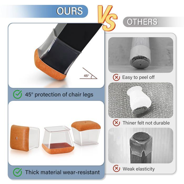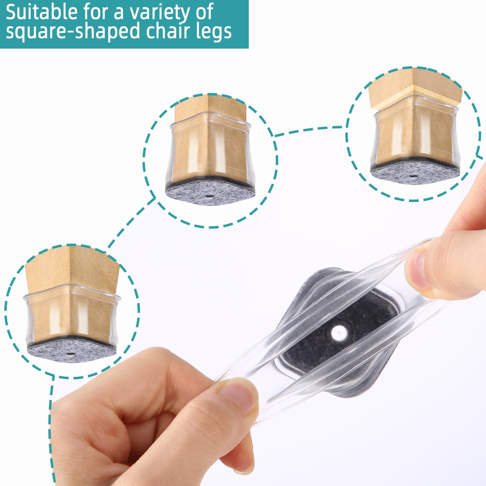 【Protègez vos sols et vos meubles】Ces embouts de pieds de chaise carrés protègent efficacement vos sols en bois, en carrelage et en stratifié contre les rayures et les bosses. Vous pouvez simplement les retirer des pieds de la chaise, les rincer à l'eau et les laisser sécher. 32pcs Protection Pied De Chaise Carré, Protege Pied De Chaise Silicone Grand Patin Chaises En Transparent Pour Sols En Bois Dur Et Carrelage 96032813 Facile à installer] : nos housses de pieds de chaise sont fabriquées en silicone souple et élastique, super étiré et ne se déchire pas. Mettez-le directement pour l'utiliser, pas besoin de coller, aucun outil nécessaire, et pas de nettoyage des pieds de chaise nécessaire. Lavable et réutilisable Aucun outil ni adhésif n'est nécessaire. Chaise Transparente 32pcs Protection Pied De Chaise Carré, Protege Pied De Protection Pour Pieds De Chaises Le matériau en silicone souple s'adapte parfaitement aux pieds de votre chaise sans laisser de marques. 【Matériau de haute qualité】Fabriqué en silicone de haute qualité et respectueux de l'environnement, durable, non toxique et sans danger pour les enfants et les animaux domestiques. 【Sols silencieux】Les couvre-pieds de chaise ont des coussinets en feutre doux en dessous, ce qui réduit le bruit lors du déplacement des chaises et les empêche de glisser. LaBlanc - 16pcs Carré Protection Pied de Chaise Silicone, Protections...
