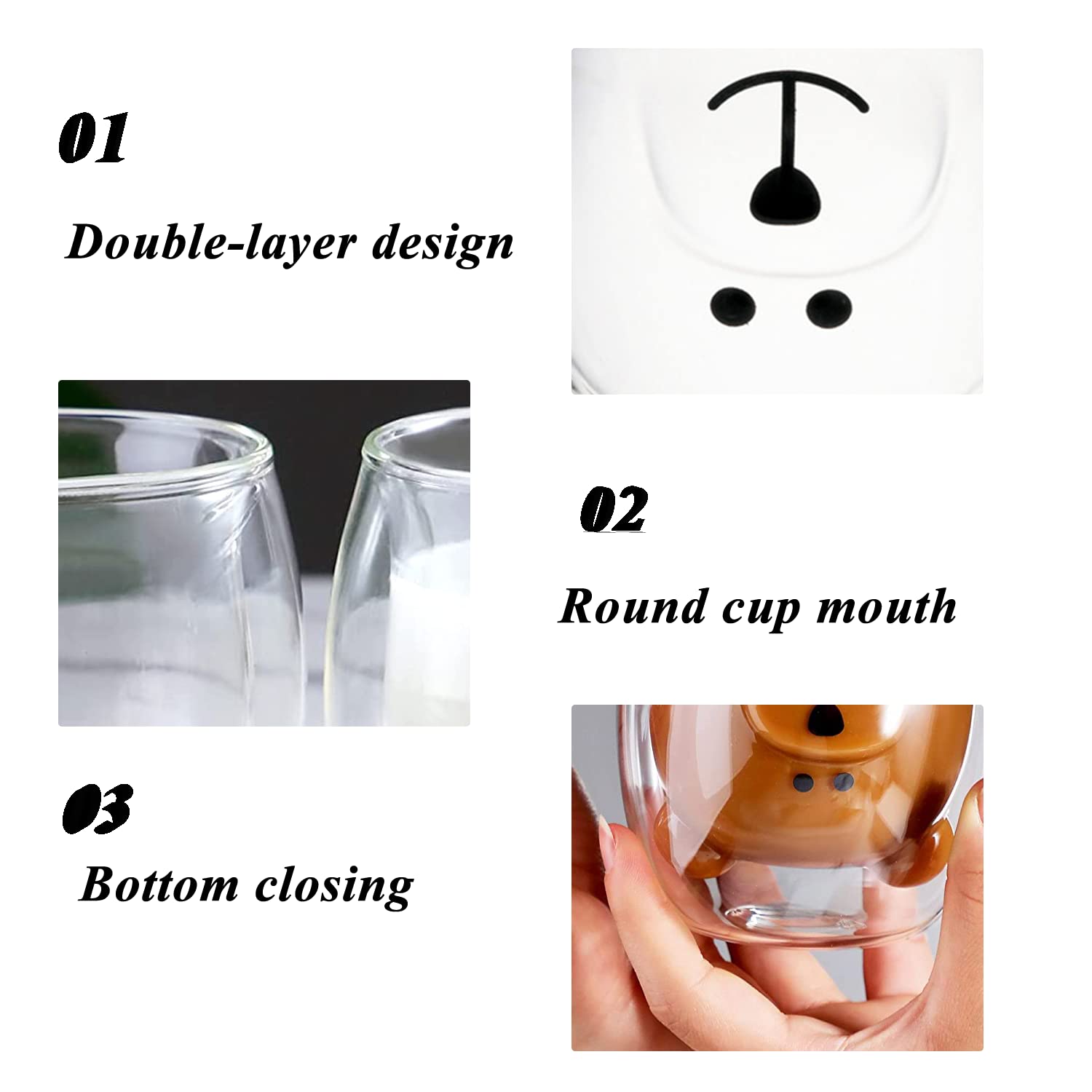 Plus d'informations Design ours mignon : l'adorable tasse en forme d'ours est esthétiquement unique et attrayante. Ne brûle jamais et ne chauffe pas : le design à double paroi peut empêcher de se brûler les mains, garder votre boisson chaude plus longtemps tout en gardant vos mains au frais Chiatai Cute Bear Tasse à Expresso Isotherme à Double Paroi En Tasse Ours Qinhai Tasse Chat, Tasse A Cafe Double Paroi, Cadeau De Noël Original Pour Femme Fille Epouse Tasse Ourson Emballage élégant et cadeau idéal : les gobelets à lait ours enveloppés dans une jolie boîte cadeau sont le cadeau idéal en particulier pour toutes les occasions telles que Noël, la Saint-Valentin, Pâques, les mariages ou comme cadeau d'anniversaire pour votre petite amie/petit ami ou parents. Par conséquent, nous espérons que vous êtes 100% satisfait des produits XlavMman. Excellent service : nous faisons de notre mieux pour satisfaire nos clients. Ne convient pas pour une utilisation avec des ustensiles métalliques 100 % sans plomb, sans BPA Verres isothermes à double paroi Matériau : verre borosilicate La tasse avec ... Saint-Valentin Verre Double Paroi Transparent 250ml avec Poignée pour Café Thé... Cadeau parfait pour les amoureux et la famille, sentez le plaisir d'un beau verre de boisson