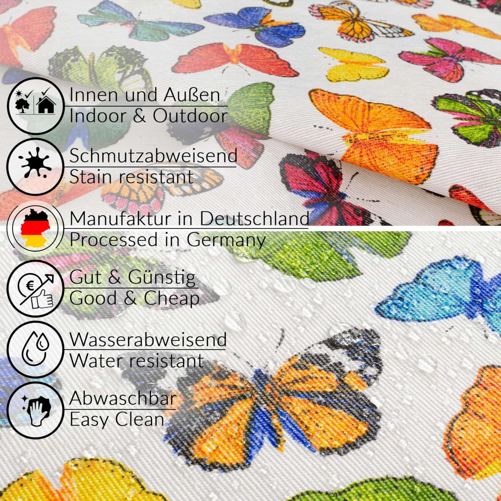 La nappe textile est-elle imperméable ? Oui, nos nappes en tissu sont particulièrement faciles à entretenir, car elles possèdent une propriété hydrofuge. Si une tache reste sur la nappe en tissu, un lavage à 30 °C est possible. Gastronomie Populaire dans les restaurants et les cafés, facile à nettoyer et à protéger de la saleté. Protection de l'humidité Grâce à sa technologie anti-plis améliorée, la nappe en tissu ANRO ne se plie pas et ne se froisse pas. La nappe en lin Premium a-t-elle des plis ? Non, grâce à sa technologie anti-plis améliorée, la nappe en tissu ANRO ne se plie pas et ne se froisse pas. Qualité supérieure : fabriqué à partir d'un mélange de qualité supérieure de 70 % coton et 30 % polyester, le linge de table textile offre une combinaison optimale de douceur et de durabilité. En outre, la nappe en lin peut être découpée avec des ciseaux. Terrasse - Extérieur La nappe textile convient pour l'intérieur et le jardin. Polyvalentes, elles protègent des rayures et des taches, faciles à nettoyer. Nappes Pour Table Ronde Nappe Rectangulaire En Coton Et Polyester, Lavable, Tissée à Rayures Nappe En Tissu Pas Cher 1 Variété de designs 2 Bon sur la cuisine 3 Salle de séjour 4 Terrasse - Extérieur 5 Gastronomie Fabriquée en Europe, la nappe est soigneusement fabriquée selon les normes les plus élevées. La nappe en tissu d'ANRO est polyvalente et convient parfaitement à la cuisine, au salon, à la terrasse en plein air et même à la restauration. La nappe en tissu Premium est composée de matériaux de haute qualité - 70% coton & 30% polyester. Respectueux de l'environnement : la nappe textile a également été respectée pour la durabilité, car elle est fabriquée à 50 % à partir de matières premières recyclées. Grâce à un revêtement spécial sur la surface, les liquides perlent tout simplement et peuvent être essuyés sans effort. Important : la nappe textile doit être repassée uniquement sur l'envers. Hydrophobe et de haute qualité. Des modèles unis et sobres à un imprimé tropical à motif de feuilles, tout est disponible avec un ruban passepoilé. La nappe de printemps Sevenstars est conçue avec un magnifique imprimé de fleurs sauvages en aquarelle. Notre nappe florale est le choix parfait pour... Tissu toile outdoor déperlante papillon Elles peuvent également être repassées, mais il convient d'utiliser une température basse à moyenne. Salle de séjour La nappe en tissu confère à votre salon une touche de style et un ensemble harmonieux.