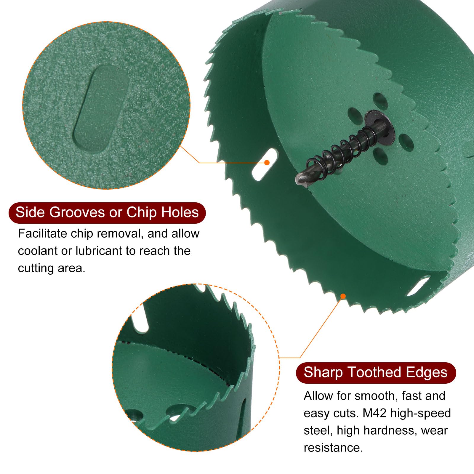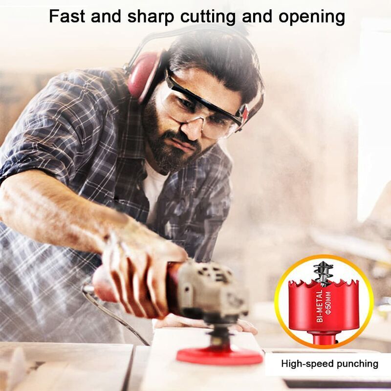 Ne pas utiliser sur des perceuses à percussion. Taille – Diamètre de coupe : 18 mm ; taille de la tige triangulaire : 10 mm ; profondeur de coupe : 30 mm ; longueur totale : 83 mm Utilisation : Utilisé avec les perceuses d'établi, perceuses, perceuses électriques, perceuses sans fil, etc. Le matériau de coupe doit être bien fixé et à un angle de 90 degrés par rapport à l'ouvre-trou. Foret de Coupe de Scie Cloche M42 HSS de 110 Mm, Haute dureté Pour les scies cloches de plus grand diamètre, il est recommandé de commencer par un trou de guidage. Le revêtement pulvérisé résiste à la rouille et à la corrosion. Remarque : utilisé avec des perceuses d'établi, des perceuses, des perceuses électriques, des perceuses sans fil, etc. Description du produit Acier rapide M42 et alliage de cobalt : le corps de la scie cloche est fabriqué en acier rapide M42 de qualité supérieure, qui a une excellente dureté, résistance à l'usure et résistance à la chaleur. La puissance de la perceuse électrique manuelle doit être supérieure à 750 W. Les scies cloches bimétalliques ont plus d'arêtes de coupe que les scies cloches en carbure. Dent acérée: le jeu de forets à trous offre des dents résistantes aux chocs et à l'abrasion des dents. Largement utilisé: le jeu de forets à bois bimétal... Appliquez un lubrifiant approprié en fonction du matériau percé (par exemple, huile pour métal, eau pour bois). Scie Cloche 150 Mm, Ensemble De Fraises Bimétalliques M42 Avec Mandrin La scie cloche peut créer des trous ronds dans le bois, le plastique, les plaques de plâtre, l'acier, l'aluminium, le contreplaqué, le PVC, les panneaux de... Rainures latérales : les rainures latérales ou les trous de copeaux facilitent le retrait des copeaux et empêchent l'encrassement, et permettent au liquide de refroidissement ou au lubrifiant d'atteindre la zone de coupe, prolongeant la durée de vie de l'outil et l'efficacité de coupe. Les rainures latérales ou les trous de copeaux facilitent le retrait des copeaux et empêchent l'encrassement, et permettent au lubrifiant d'atteindre la zone de coupe, prolongeant la durée de vie de l'outil et l'efficacité de coupe. Utilisez une vitesse et une pression appropriées et portez toujours un équipement de sécurité approprié. Nombreuses utilisations : La scie cloche peut créer des trous ronds dans le bois, le plastique, les plaques de plâtre, l'acier, l'aluminium, le contreplaqué, le PVC, les panneaux de fibres, les tôles métalliques. Le matériau de coupe doit être bien fixé, et il doit être à un angle de 90 degrés avec l'ouvre-trou.