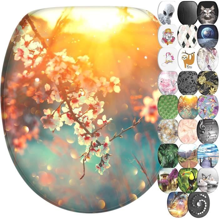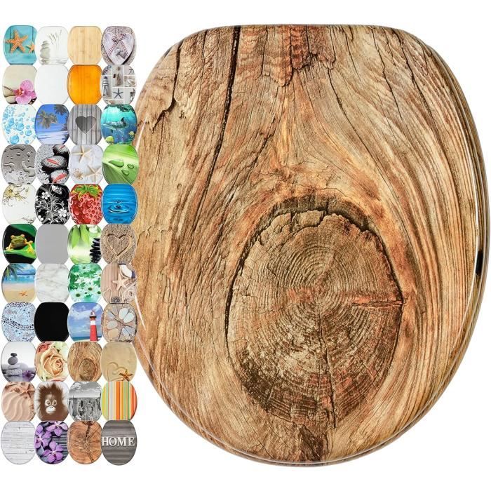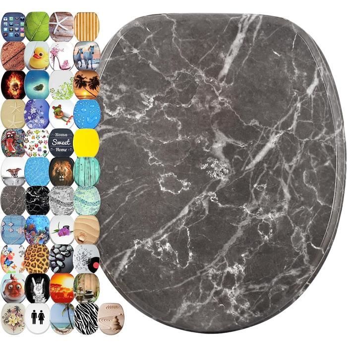 Abattant WC frein de chute soft close Tête de vache Matière: - Bois (fabrication solide) Dimensions: - Dimensions extérieures: L / l = 47,0 / 37,7 cm - Dimensions intérieures: L / l = 26,7 / 23,0 cm - Équipé de charnières très solides (inoxydables), plage de réglage dans la largeur entre 11,0 et 20,5 cm - S'adapte à la majorité des cuvettes de WC, (suspendues ou posées) Caractéristiques: - Muni d'un frein de chute soft close - Finition de haute qualité - Revêtement antibactérien - Fixation facile grâce au matériel de montage inclus - Très confortable - Patins niveleurs solides sous la lunette - Supporte jusqu'à 200 kg Conseils d'entretien: - Entretien facile à l'aide de produits d'entretien ménager - Résistant Matière: Bois (fabrication solide) Dimensions: L / l = 46,0 / 36,0 cm Pratique Le système d'abaissement automatique intégré ferme l'abattant des toilettes en douceur et en silence. La surface de la lunette des toilettes est ainsi préservée et la longévité du produit est prolongée Le système de frein de chute fait que le couvercle se referme tout doucement et sans bruit. En plastique dur anti-rayures et anti-bactérien, il est hygiénique... Abattant WC Mosaïque Mondiale Vert Frein De Chute Soft Close - Finition De Haute Qualité Sanilo Sedile Wc Abattant WC Décoratif Tête De Vache - En Bois, Charnières Inox Et Support 200kg Charnières Inox Réglables